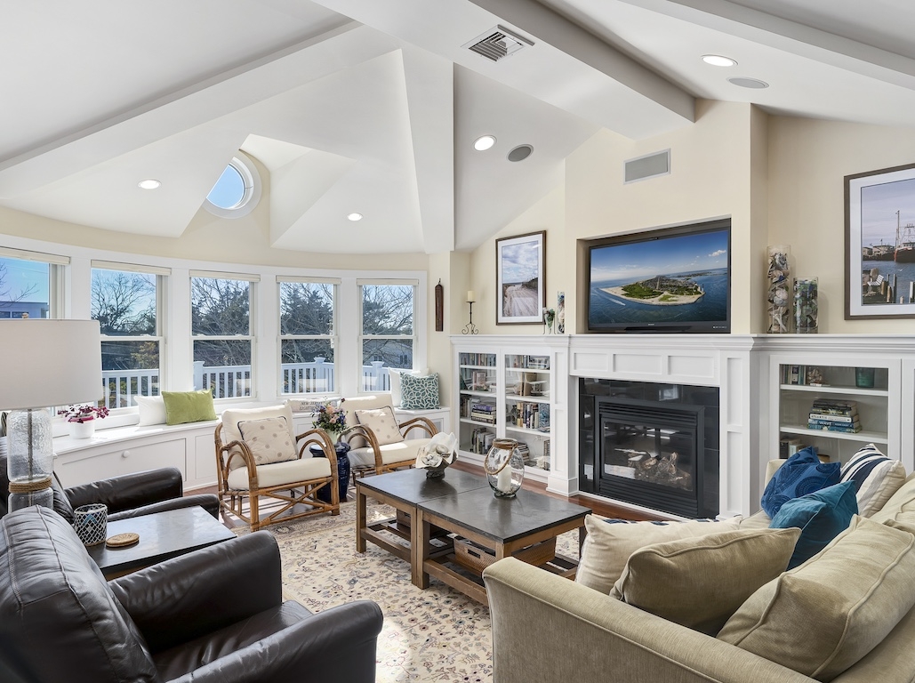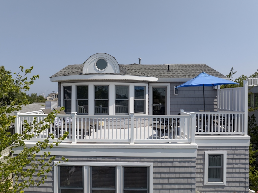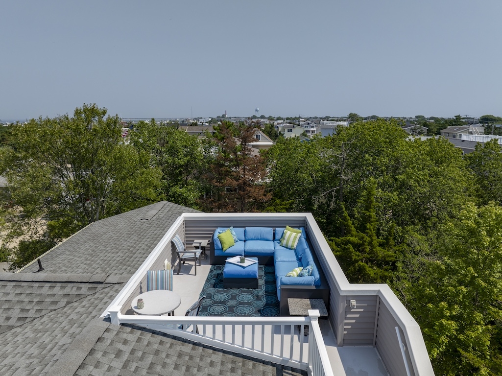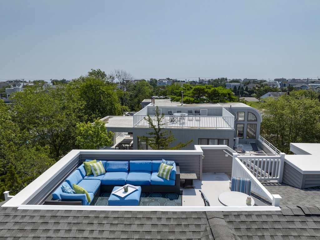 This captivating home boasts a reversed living design, ensuring that exceptional coastal views are part of your everyday life. With four spacious bedrooms and 3.5 baths, everyone has room to unwind in comfort. The expansive roof deck offers a front-row seat to breathtaking sunrises and sunsets, while the fiberglass in-ground pool with a spillover spa creates a tranquil oasis in your private, fenced yard adorned with lush landscaping and elegant Pennsylvania Blue Slate. Entertain through the summer on the large screened porch or gather around the grilling deck off the kitchen, where culinary dreams come to life in the chef’s kitchen, featuring granite countertops and high-end Viking appliances, including a double oven. The living room exudes warmth with dramatic vaulted ceilings, a cozy gas fireplace, and custom cabinetry that enhances the home's charm. For added convenience, the three-stop elevator makes accessing each level a breeze, while the primary suite promises serenity with its soaking spa and private office retreat. With wood and ceramic tile flooring throughout, this home is both stylish and practical. Safe biking and pedestrian paths make Island life enjoyable for the entire family. And when summer arrives, immerse yourself in the local community by enjoying concerts at the Town Park every Monday eveningor participating in rejuvenating yoga sessions in the warm summer air.