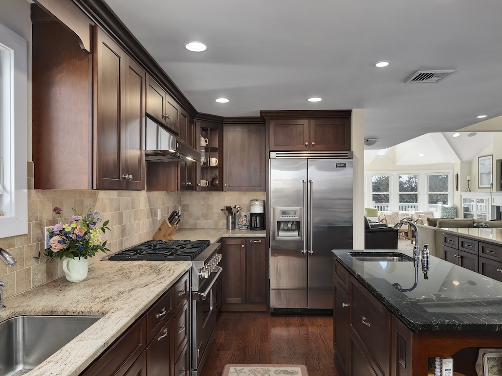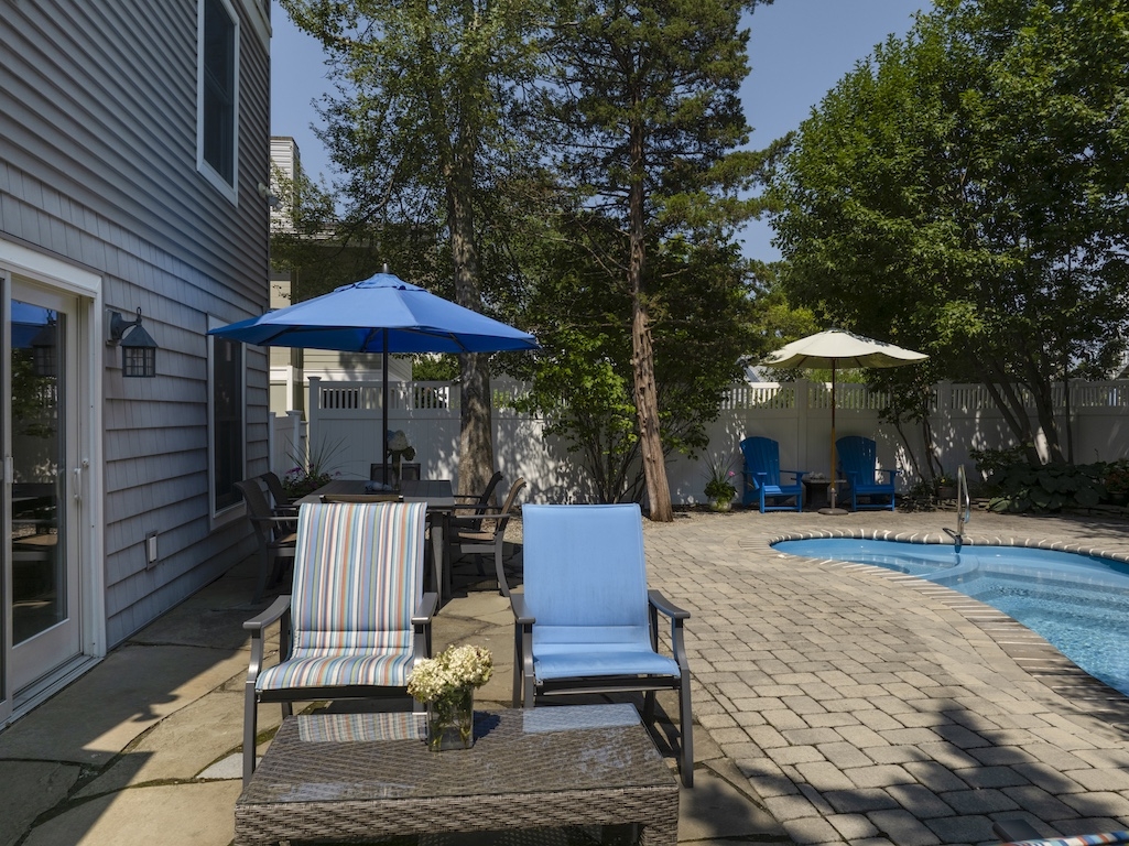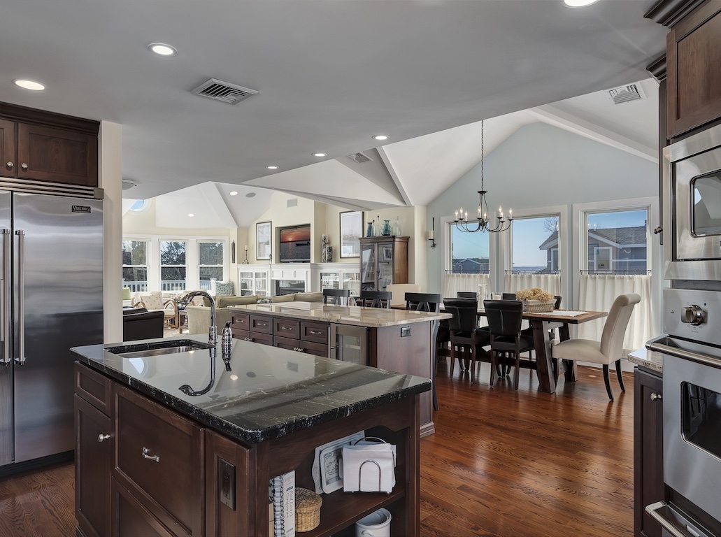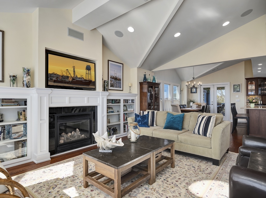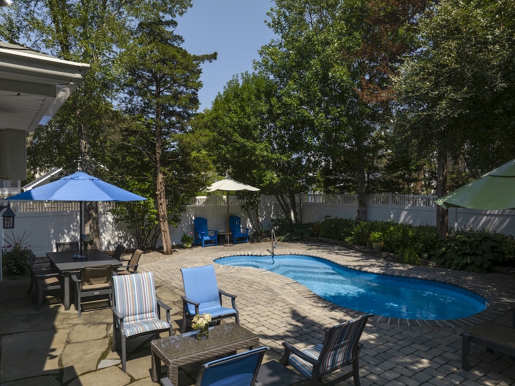 This captivating home boasts a reversed living design, ensuring that exceptional coastal views are part of your everyday life. With four spacious bedrooms and 3.5 baths, everyone has room to unwind in comfort. The expansive roof deck offers a front-row seat to breathtaking sunrises and sunsets, while the fiberglass in-ground pool with a spillover spa creates a tranquil oasis in your private, fenced yard adorned with lush landscaping and elegant Pennsylvania Blue Slate. Entertain through the summer on the large screened porch or gather around the grilling deck off the kitchen, where culinary dreams come to life in the chef’s kitchen, featuring granite countertops and high-end Viking appliances, including a double oven. The living room exudes warmth with dramatic vaulted ceilings, a cozy gas fireplace, and custom cabinetry that enhances the home's charm. For added convenience, the three-stop elevator makes accessing each level a breeze, while the primary suite promises serenity with its soaking spa and private office retreat. With wood and ceramic tile flooring throughout, this home is both stylish and practical. Safe biking and pedestrian paths make Island life enjoyable for the entire family. And when summer arrives, immerse yourself in the local community by enjoying concerts at the Town Park every Monday eveningor participating in rejuvenating yoga sessions in the warm summer air.