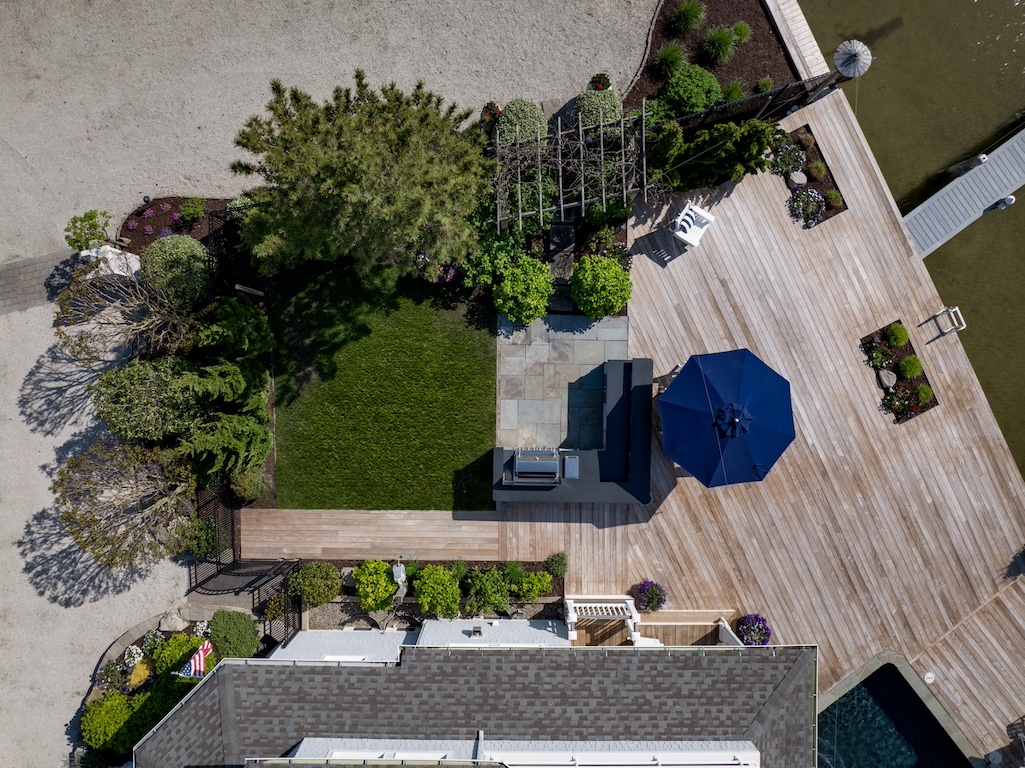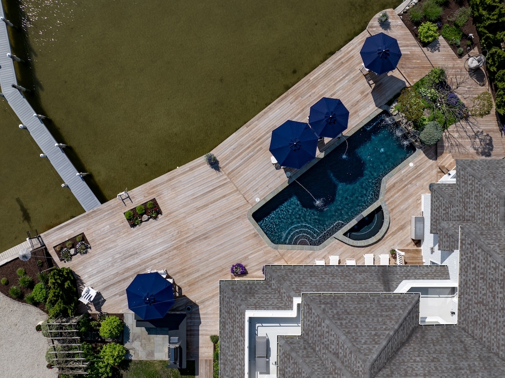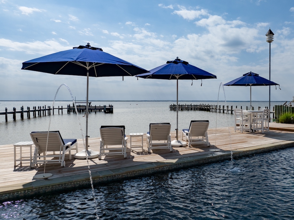 Framing the waterfront of this estate is a perfectly positioned gunite pool with peaceful rock waterfall, spa, outdoor bar and grilling area, grass play area and garden space, making the lavishly landscaped grounds prolific and present. Enjoy a walk down your new dock guiding you further into the bay where you can keep your water toys (be they big or small) or watch the sunset across the horizon. A boat lift is present as well.