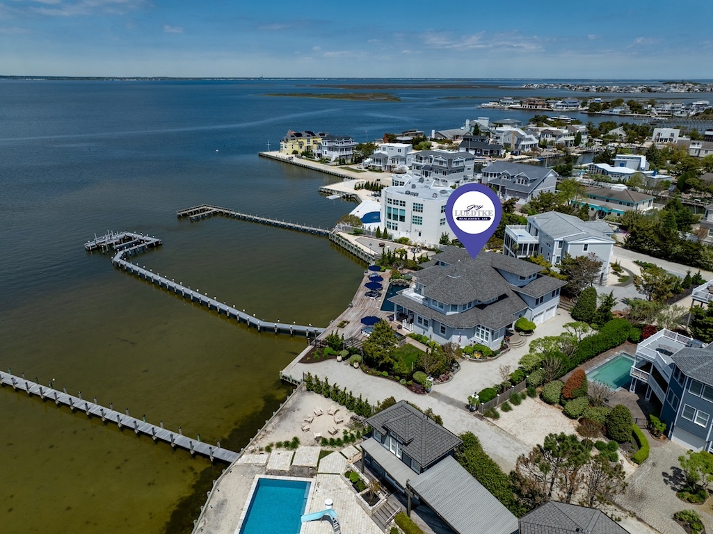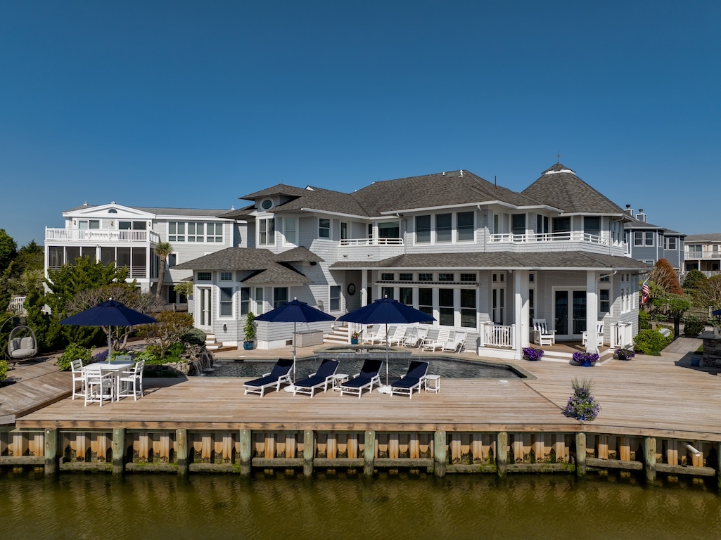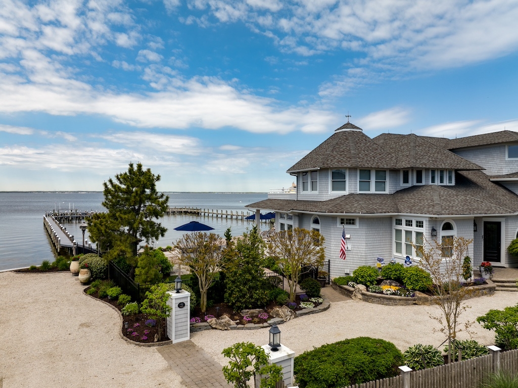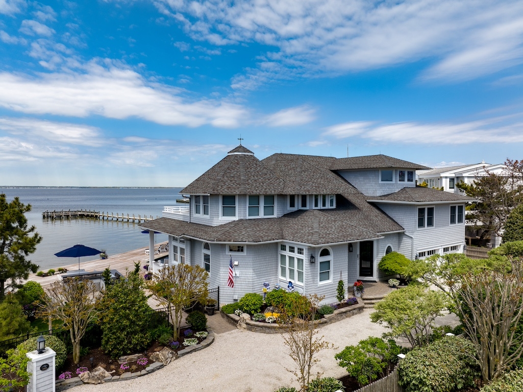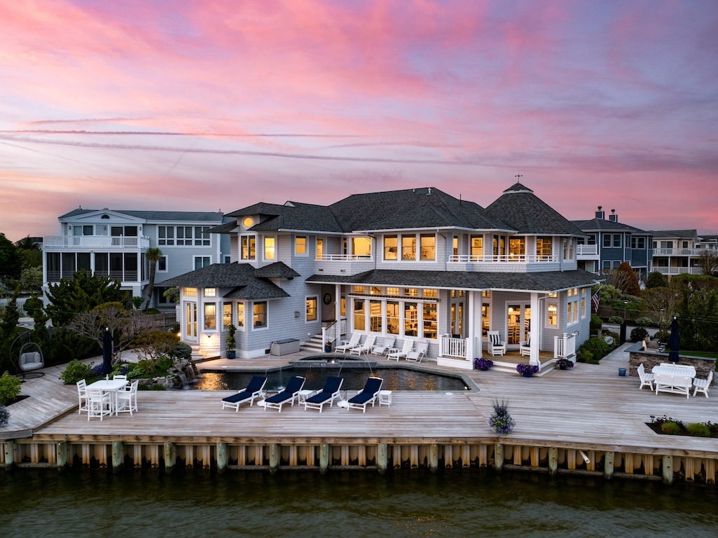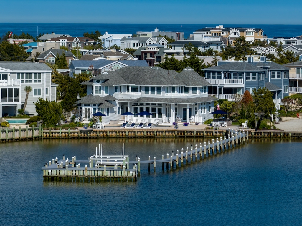 Stunning design captures boundless water views along 140 feet of Loveladies bayfront. This private Estate nestled amongst some of the finest waterfront properties on all of LBI is waiting for you to enjoy in all four seasons. With over 5,000. sq. ft. of living space, this home is both family and guest oriented featuring 5 bedrooms (4 en suite), 4.5 baths, 2 fireplaces and comfortable non-reverse living design. New Trex Decking along the deep water dock is complete with electric and fresh water line. Easy access to Robbie’s Marina and the ICW.