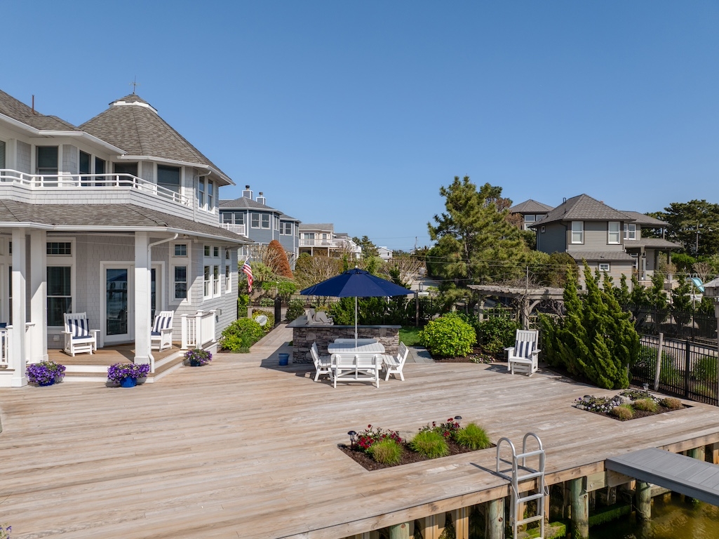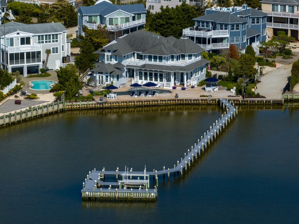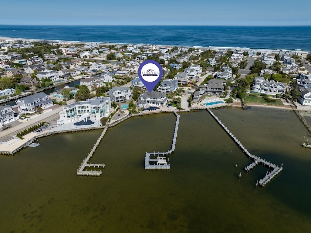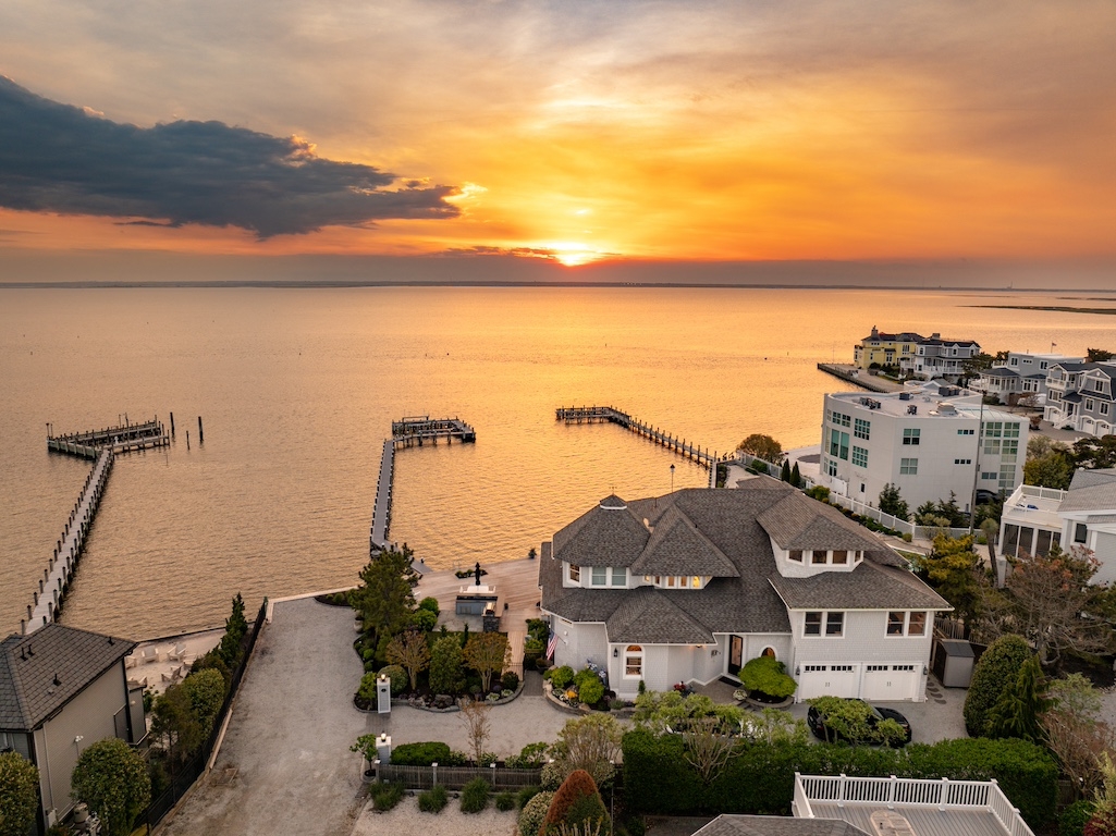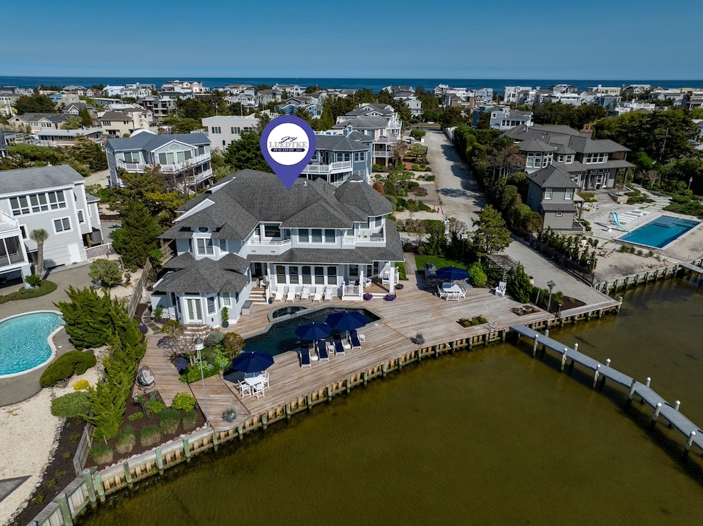 Stunning design captures boundless water views along 140 feet of Loveladies bayfront. This private Estate nestled amongst some of the finest waterfront properties on all of LBI is waiting for you to enjoy in all four seasons. With over 5,000. sq. ft. of living space, this home is both family and guest oriented featuring 5 bedrooms (4 en suite), 4.5 baths, 2 fireplaces and comfortable non-reverse living design. New Trex Decking along the deep water dock is complete with electric and fresh water line. Easy access to Robbie’s Marina and the ICW.