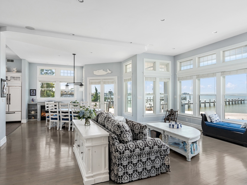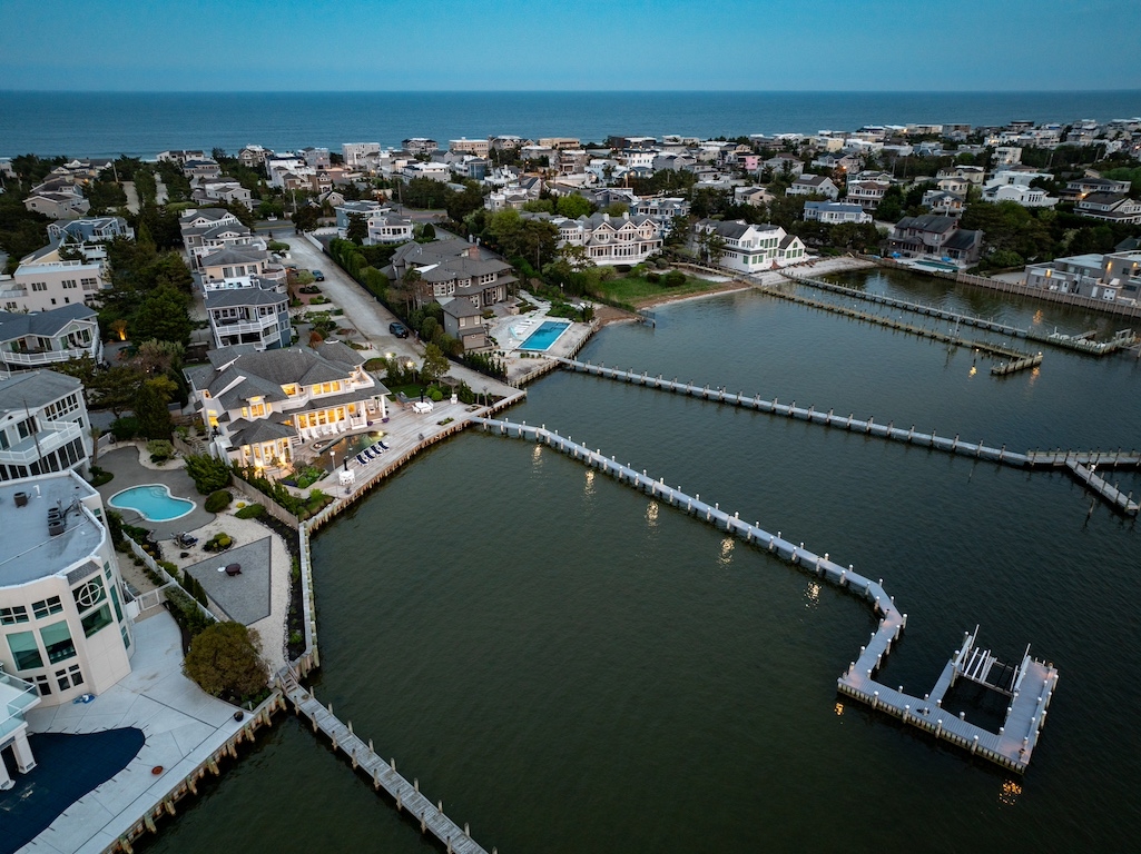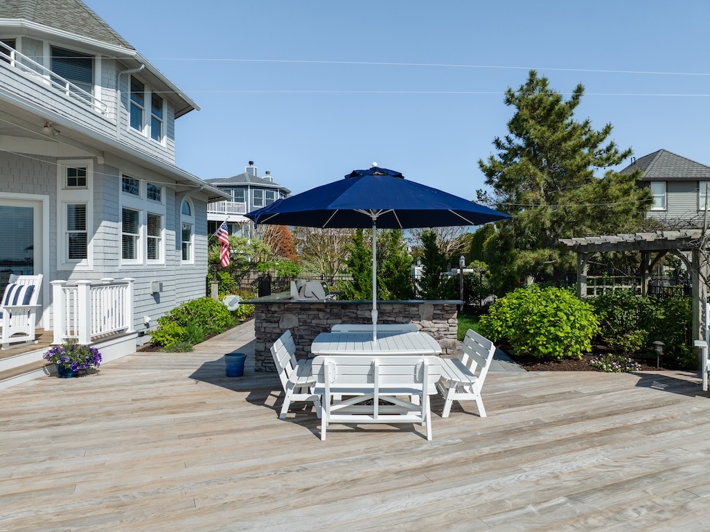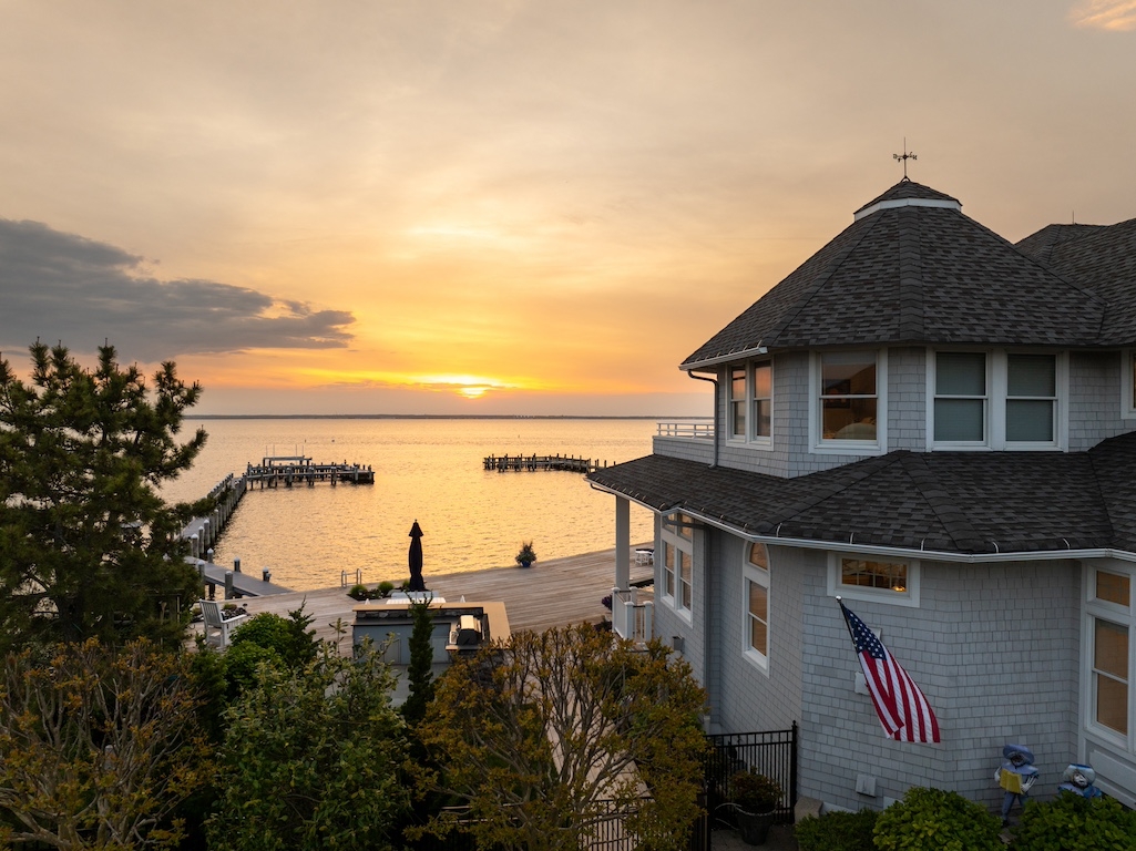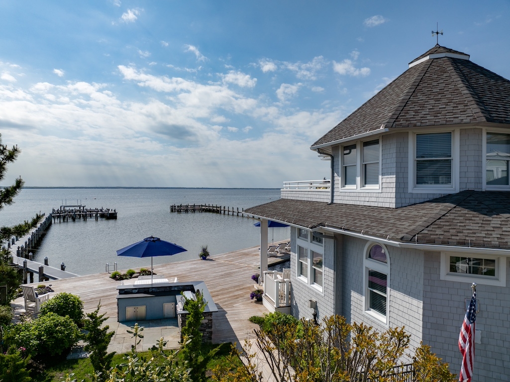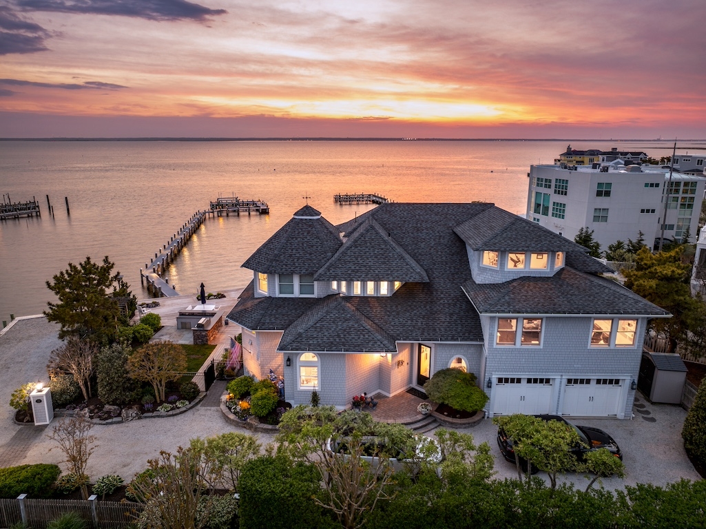 Stunning design captures boundless water views along 140 feet of Loveladies bayfront. This private Estate nestled amongst some of the finest waterfront properties on all of LBI is waiting for you to enjoy in all four seasons. With over 5,000. sq. ft. of living space, this home is both family and guest oriented featuring 5 bedrooms (4 en suite), 4.5 baths, 2 fireplaces and comfortable non-reverse living design. New Trex Decking along the deep water dock is complete with electric and fresh water line. Easy access to Robbie’s Marina and the ICW.