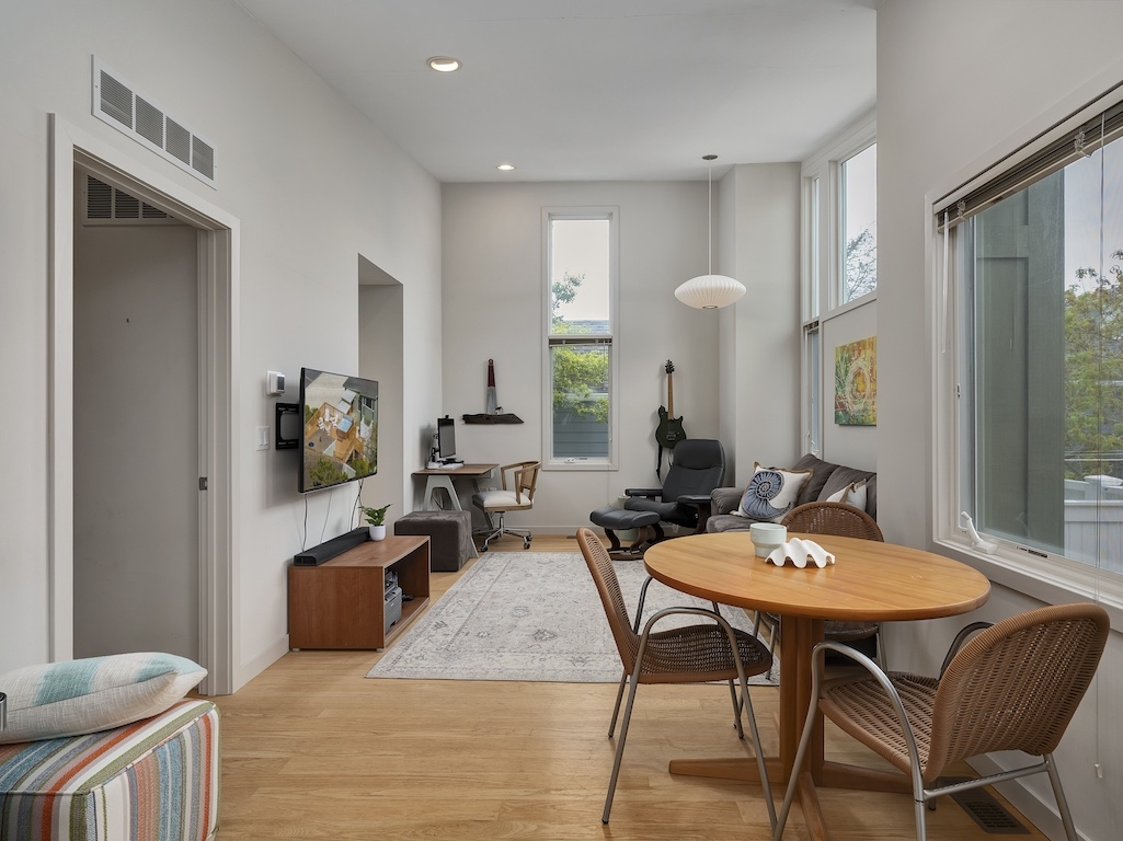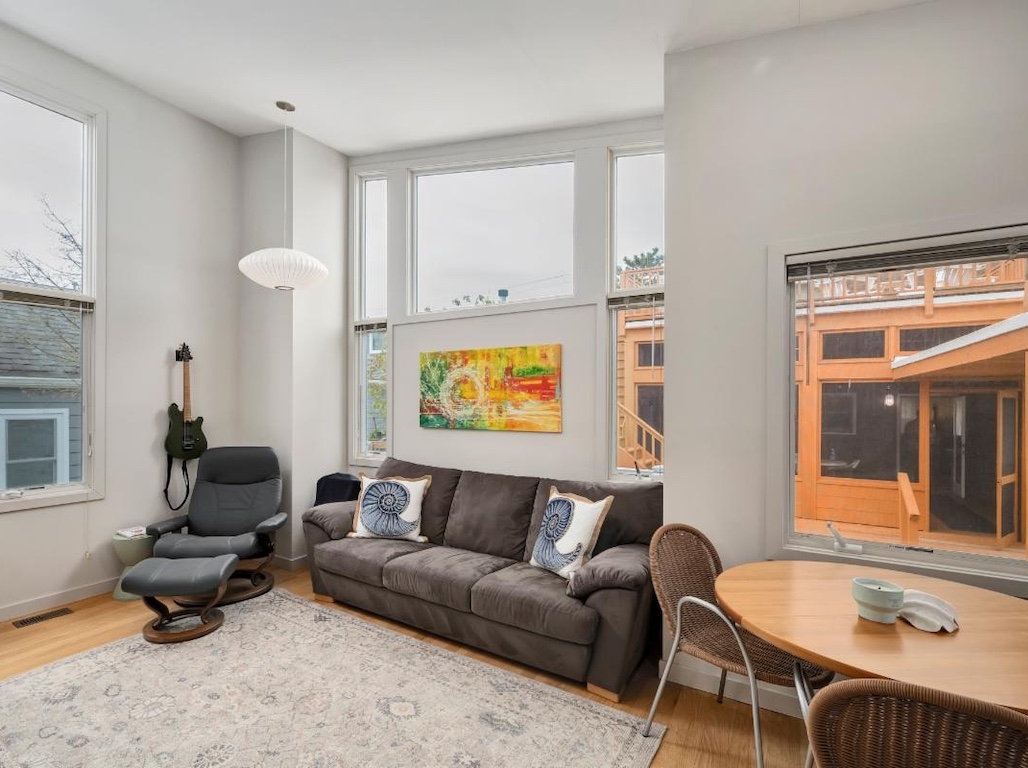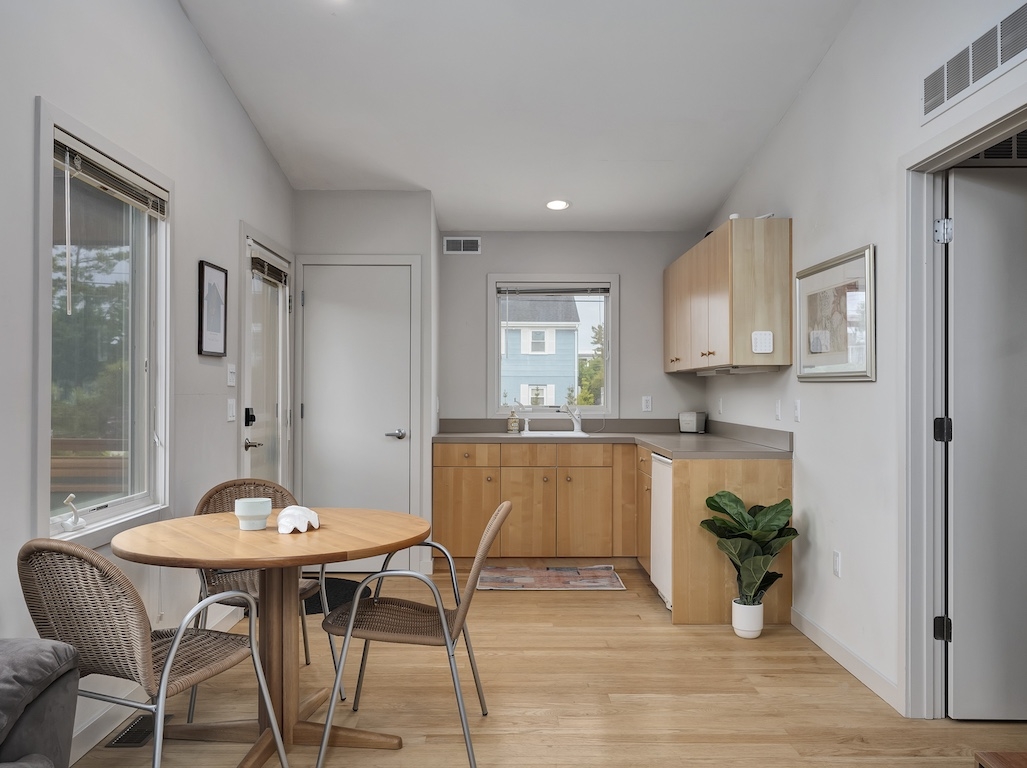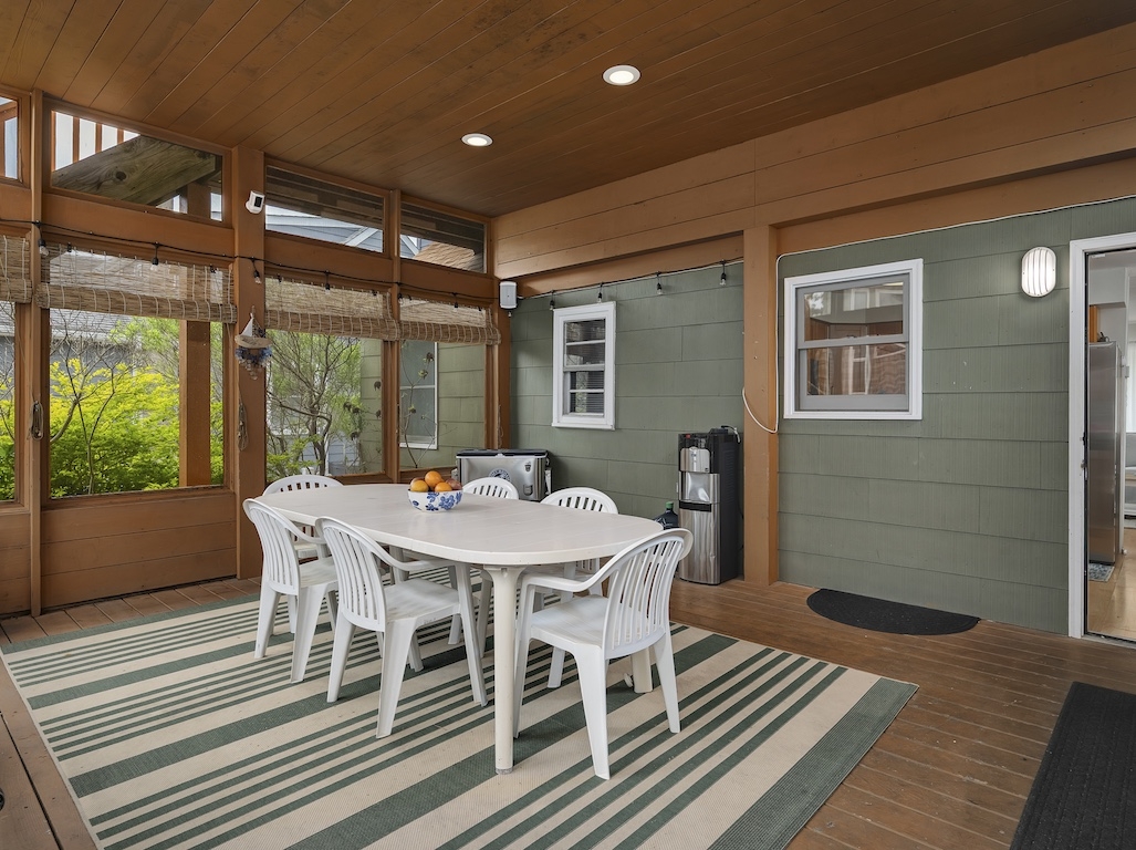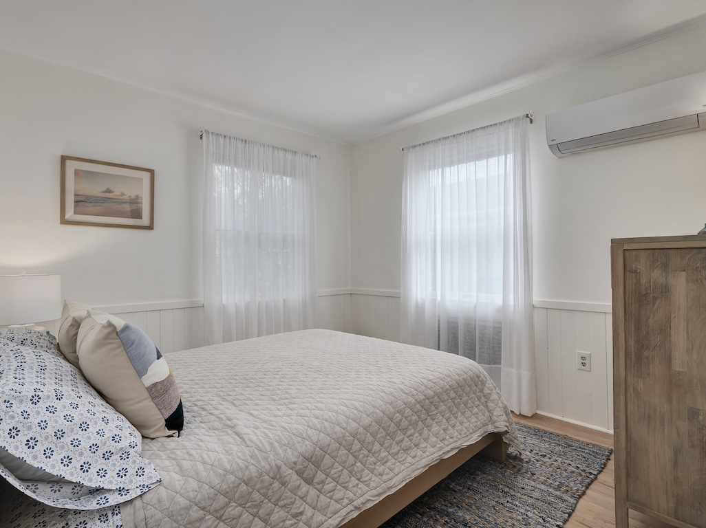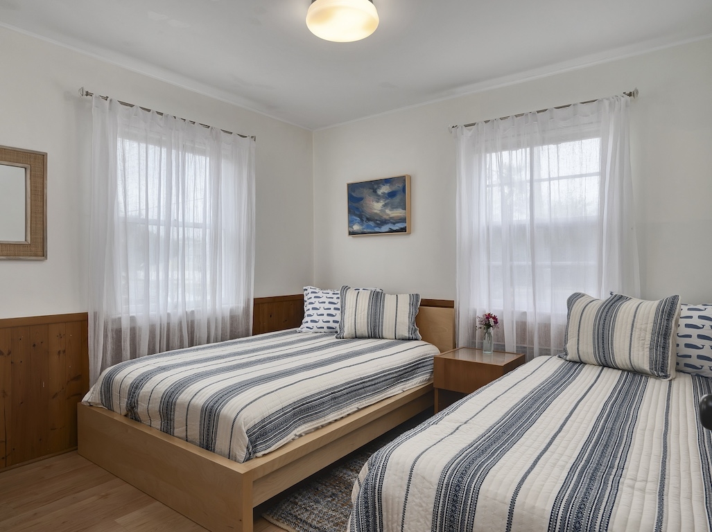 The main Cape Cod features 4 bedrooms and 2 full baths, connected by a breezeway to a spacious modern accessory cottage—complete with its own bedroom, bath, kitchenette, and generous living and dining space. Privately tucked between the two structures is a large screened-in porch with a rooftop deck, hot tub, and ample room for sun bathing.