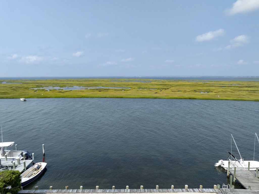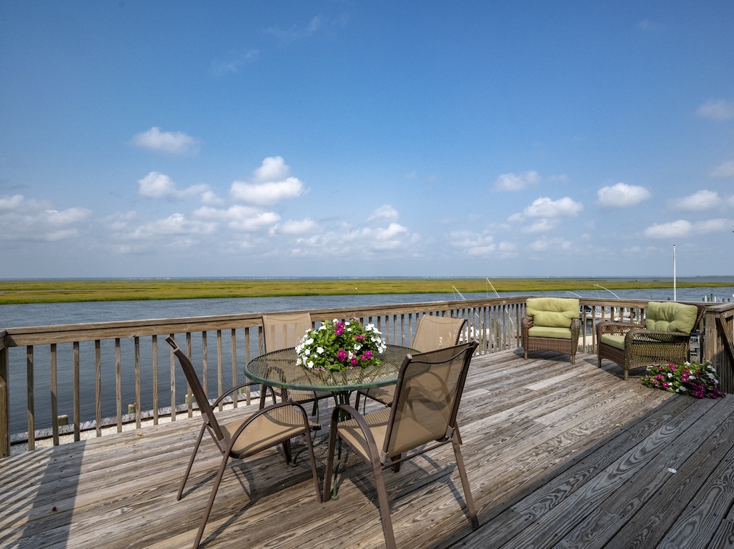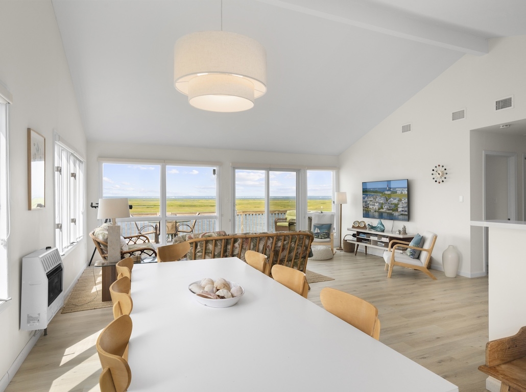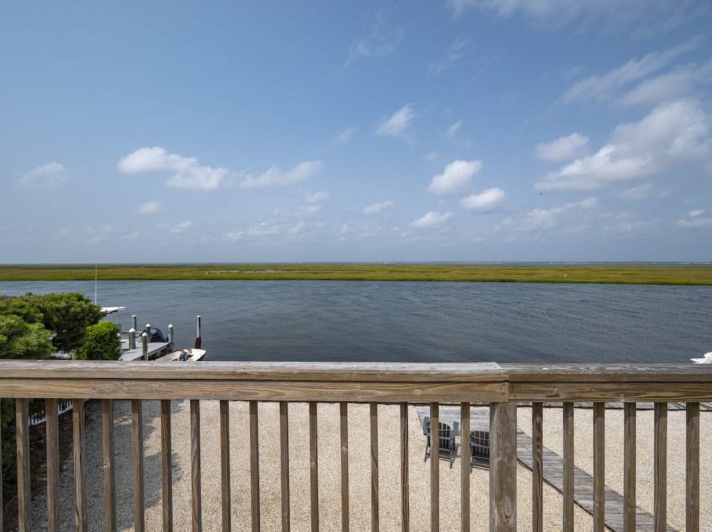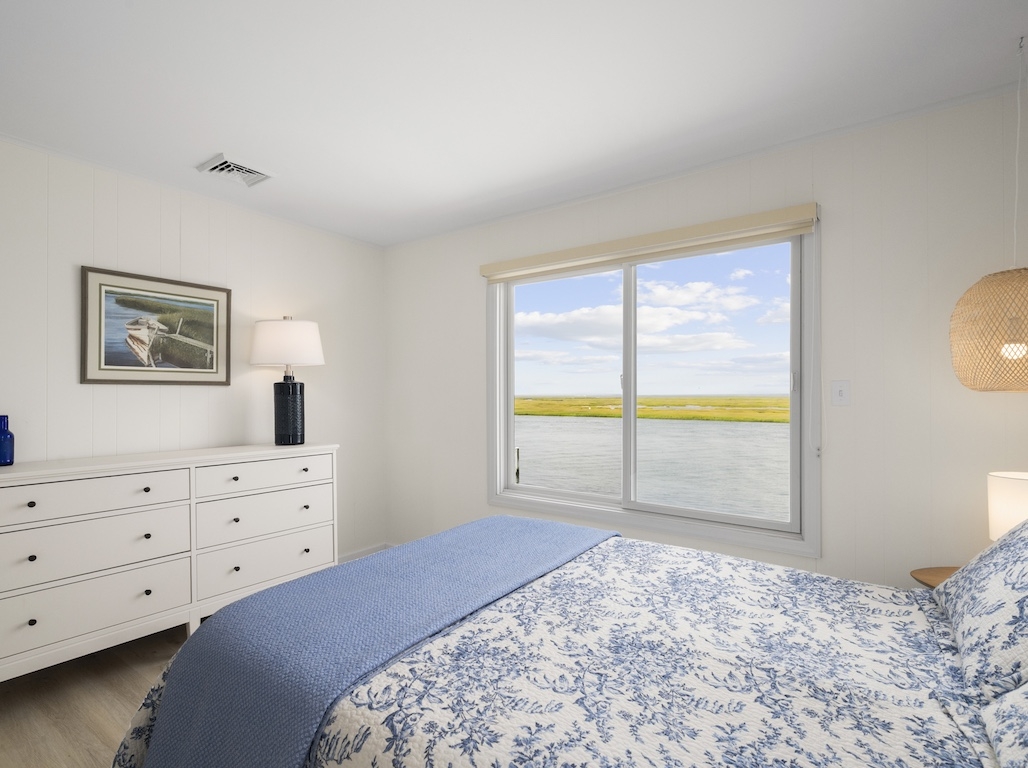 Perched in a premier bayfront setting, this elevated property offers 66 feet of pristine vinyl bulkheaded frontage and a coveted riparian grant, allowing for a private dock. Inside, the three-bedroom, three-bath home features a light, whitewashed coastal interior that perfectly complements the sweeping views of the bay and surrounding marshland.
