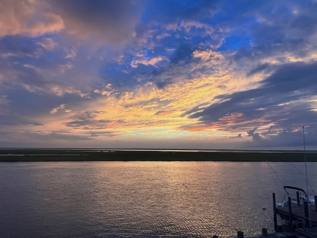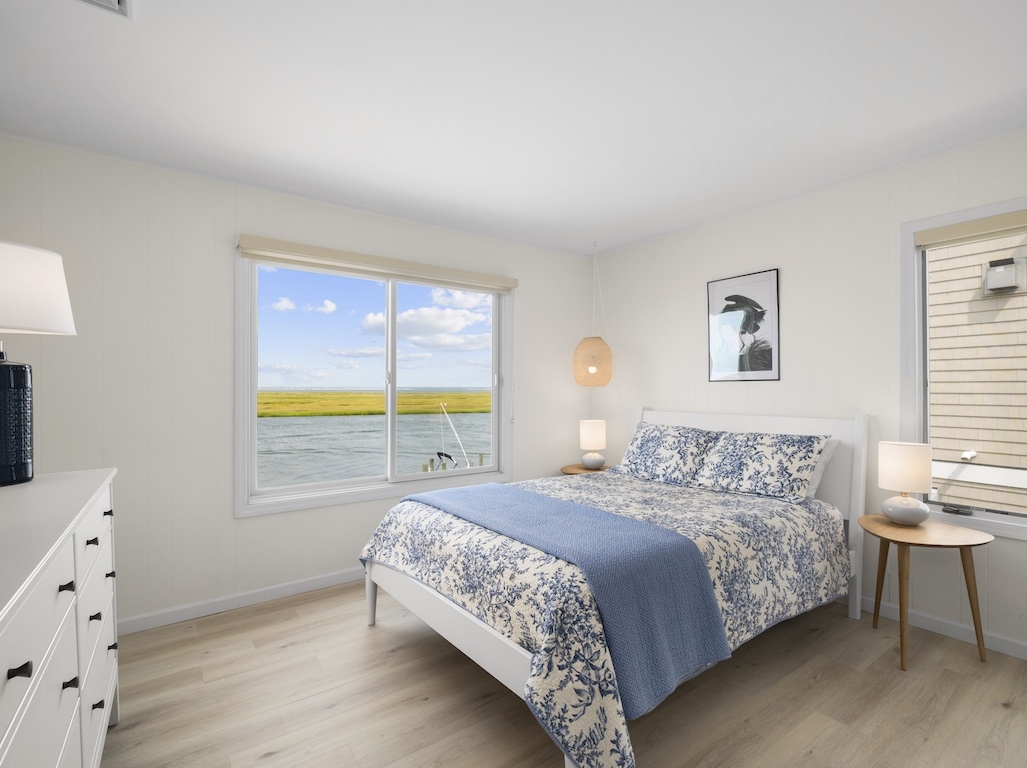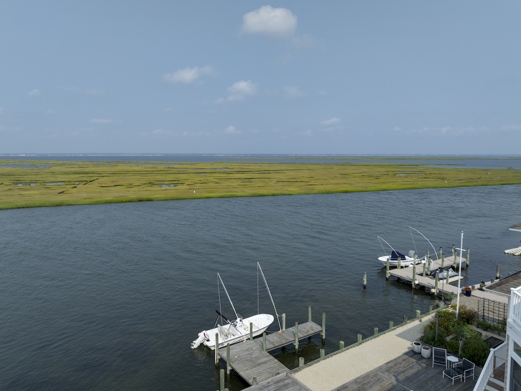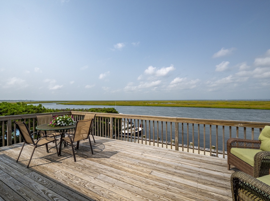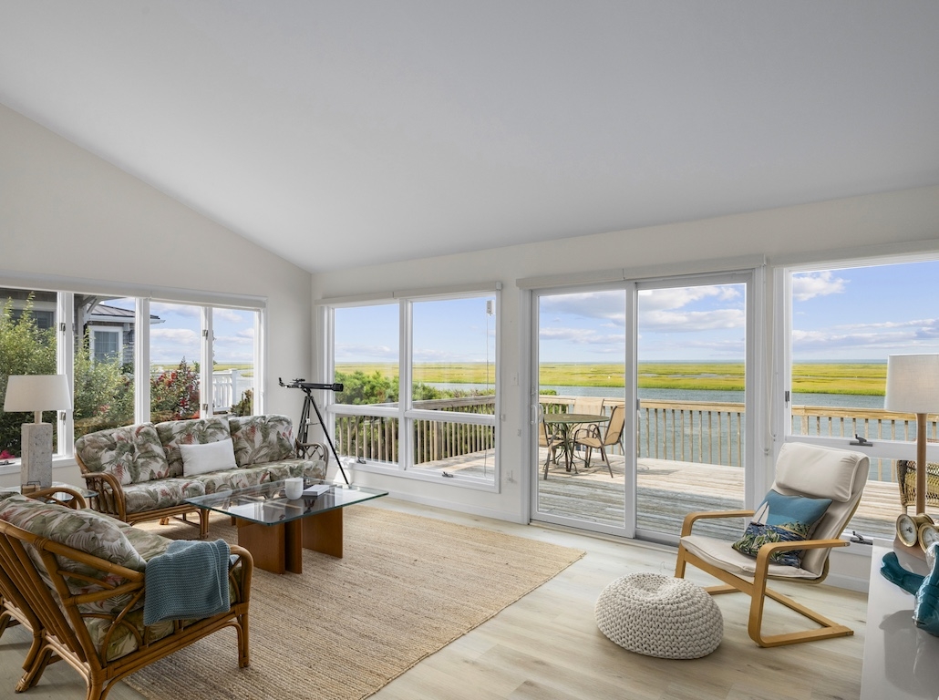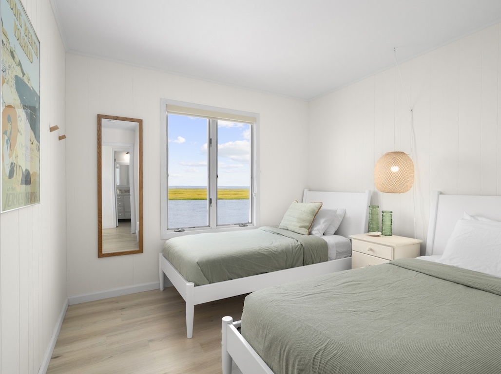 Perched in a premier bayfront setting, this elevated property offers 66 feet of pristine vinyl bulkheaded frontage and a coveted riparian grant, allowing for a private dock. Inside, the three-bedroom, three-bath home features a light, whitewashed coastal interior that perfectly complements the sweeping views of the bay and surrounding marshland.
