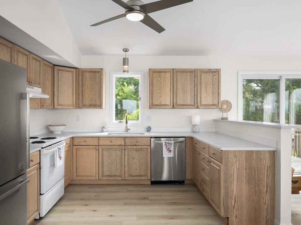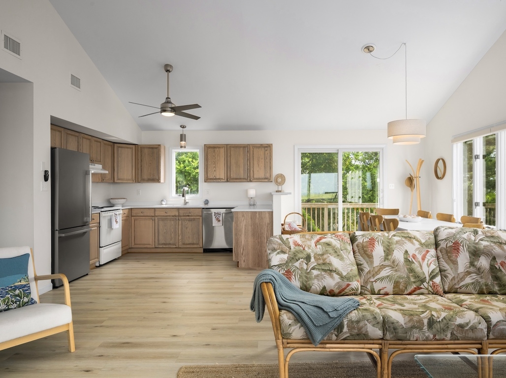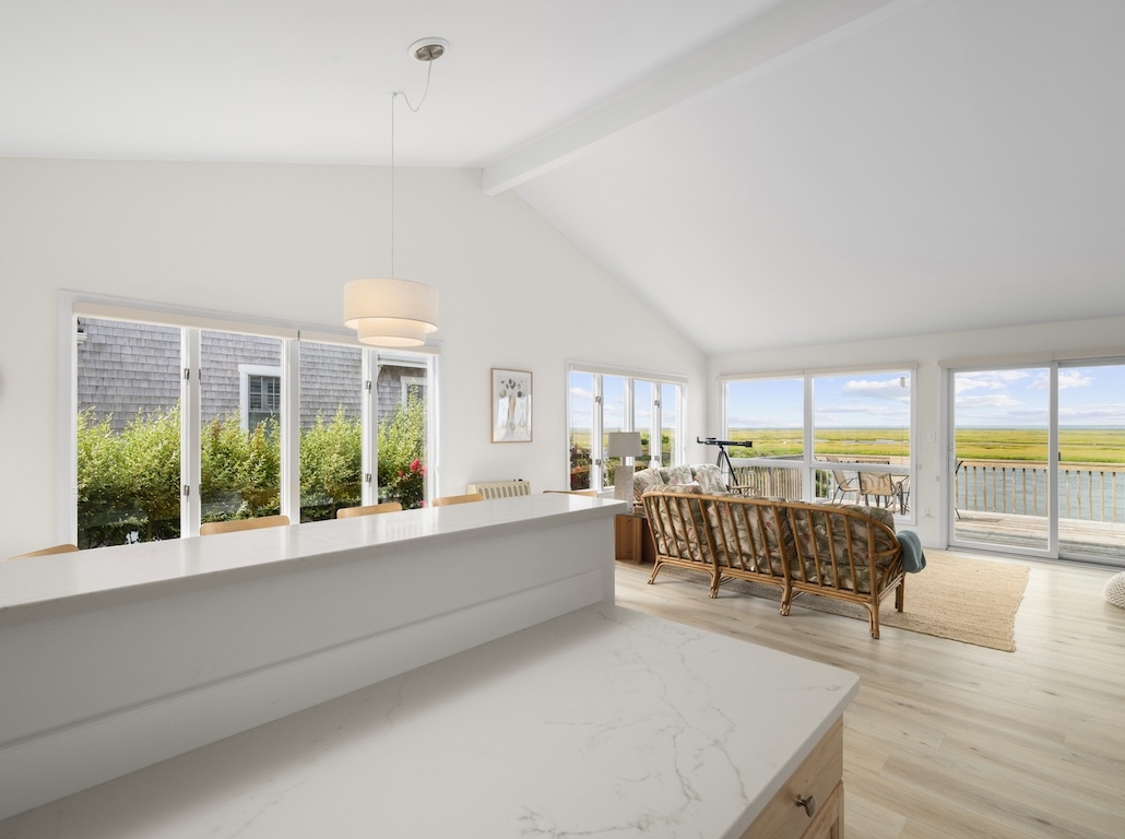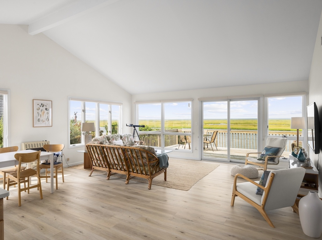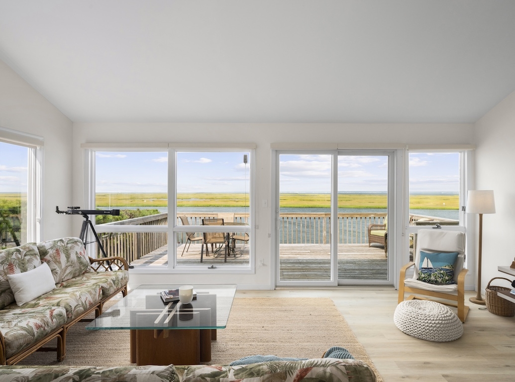 Perched in a premier bayfront setting, this elevated property offers 66 feet of pristine vinyl bulkheaded frontage and a coveted riparian grant, allowing for a private dock. Inside, the three-bedroom, three-bath home features a light, whitewashed coastal interior that perfectly complements the sweeping views of the bay and surrounding marshland.