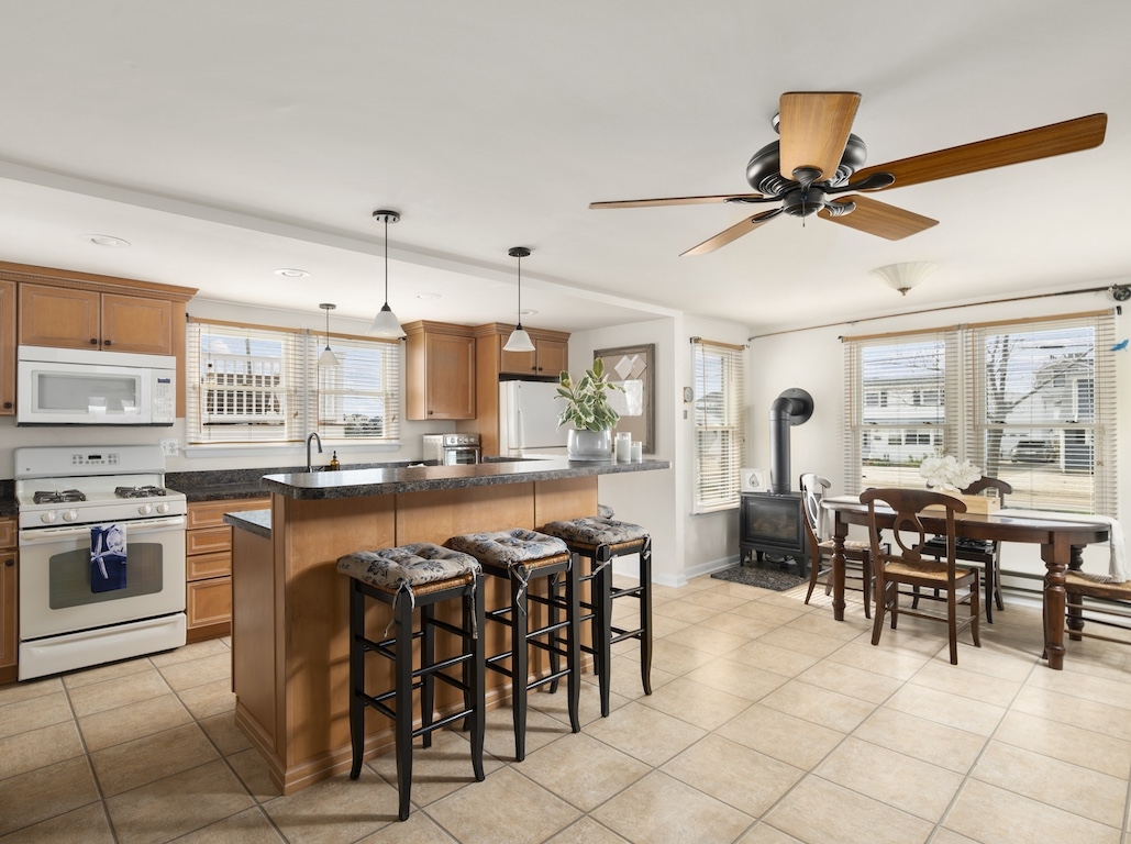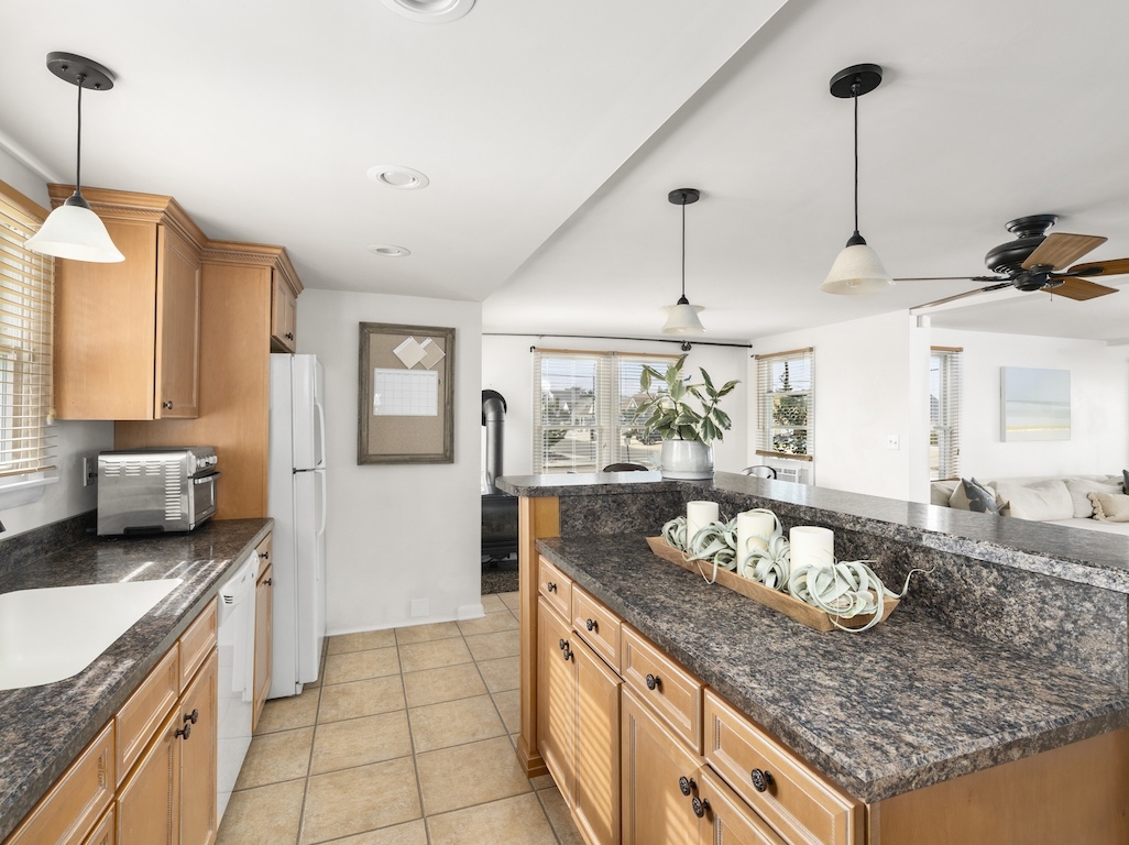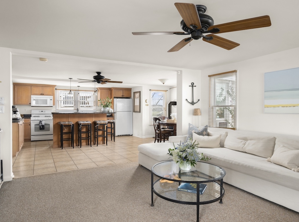 Inside, expansive sunlit interiors flow seamlessly throughout the home as a large family room serves as the heart of the house. This home is perfect for gatherings, entertaining, or simply relaxing after a day by the water.