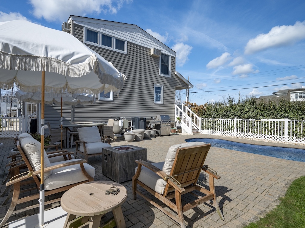 The outdoor living space is equally impressive. A private in-ground pool creates a resort-like atmosphere, ideal for sunbathing, entertaining, or enjoying summer evenings under the stars. Thoughtfully designed patios and decks encourage a seamless indoor-outdoor lifestyle, making every day feel like a vacation.