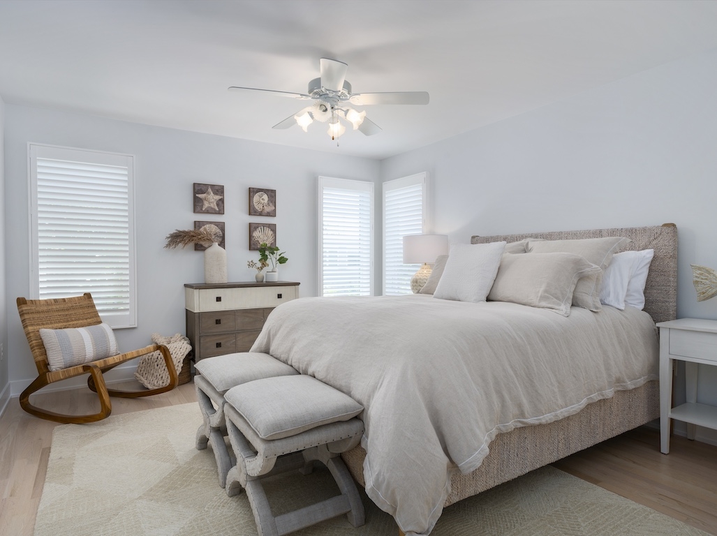 The heart of the home features a new gourmet kitchen with Viking appliances, a grilling deck with ocean views, and breakfast nook—perfect for crafting culinary masterpieces and entertaining family and friends. Stunning interior and remote control blinds by Between the Sheets. (Furnishings sold separately). With over 3,100. square feet of luxurious living space, a reversed design for optimal views, and an elevator for easy access, Paradise Found prioritizes comfort and convenience.