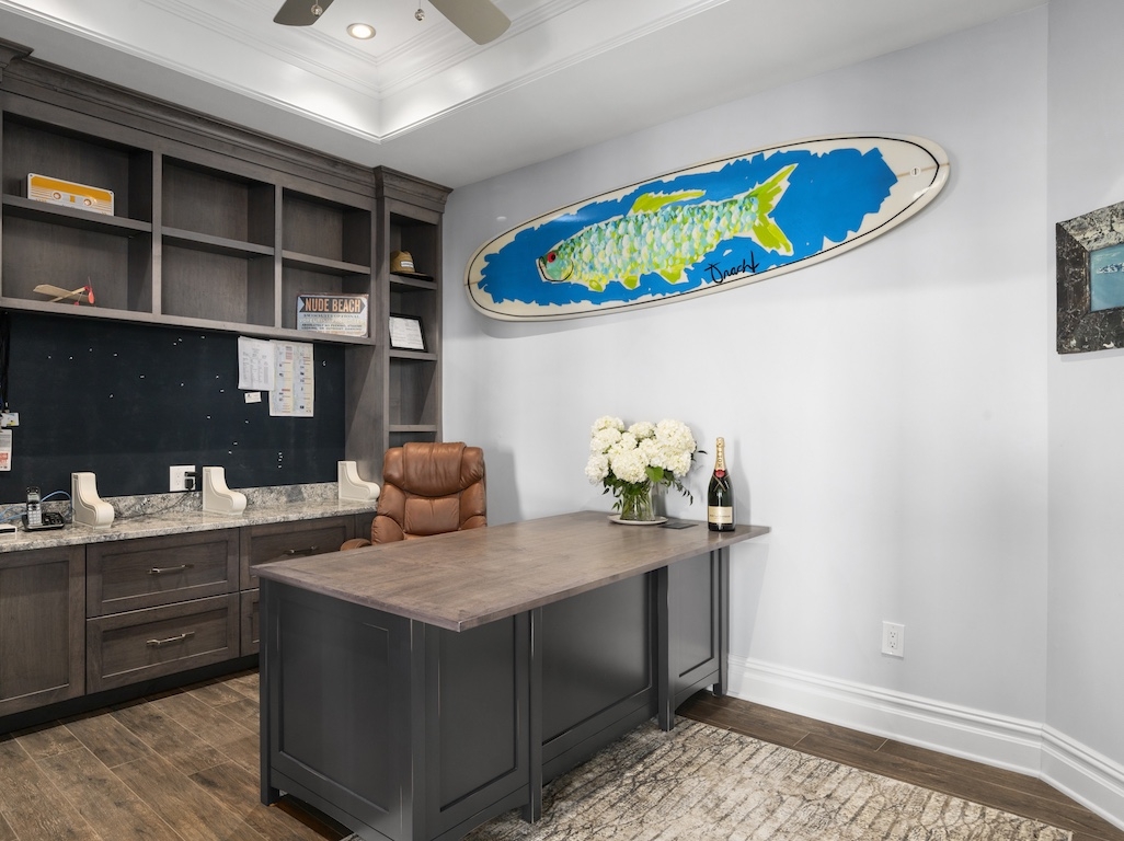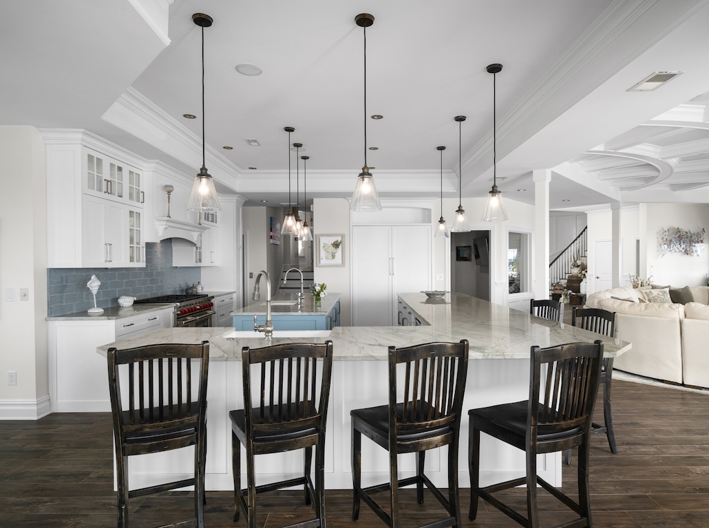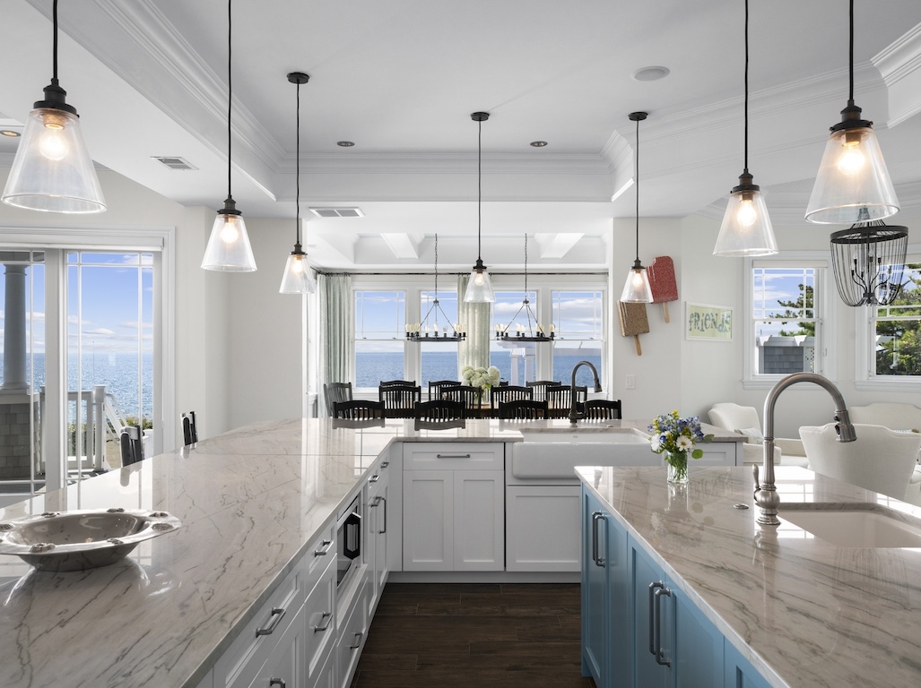At the heart of the home is a gourmet chef’s kitchen with dual islands, equipped with the finest Sub-Zero, WOLF, and Miele appliances—perfect for entertaining on any scale.
