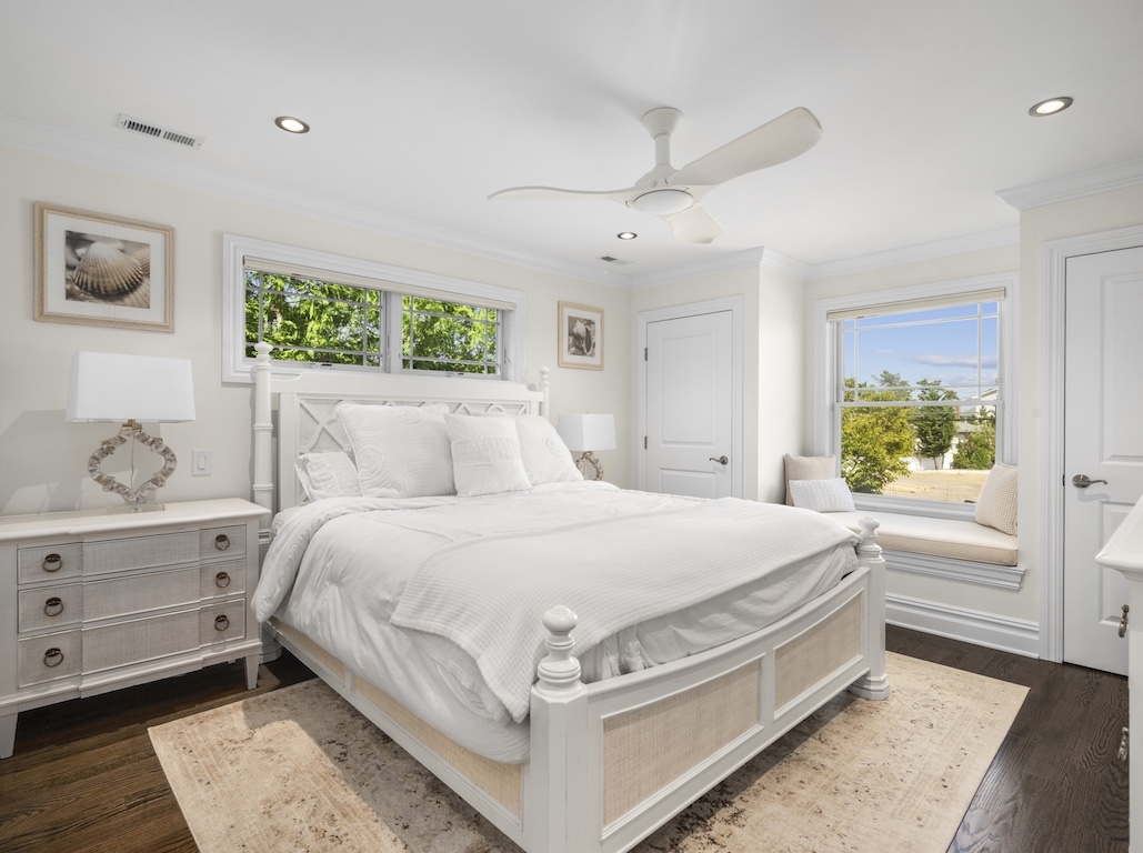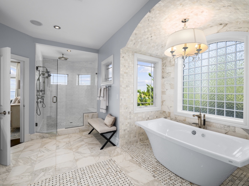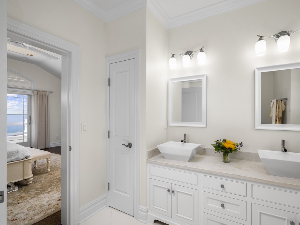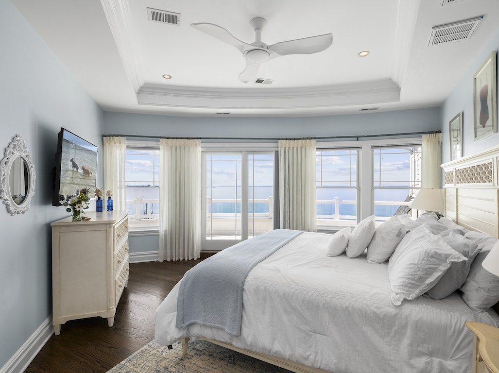 With seven en-suite bedrooms, seven full baths, and two elegant powder rooms, there is ample room for family and guests. The primary suite, perched high above the bay, offers unmatched privacy and commanding water views. A dedicated kids’ bunk room ensures fun, comfort, and convenience for younger visitors. There are four luxurious bayfront bedroom suites taking full advantage of the Estate’s copious waterfrontage.