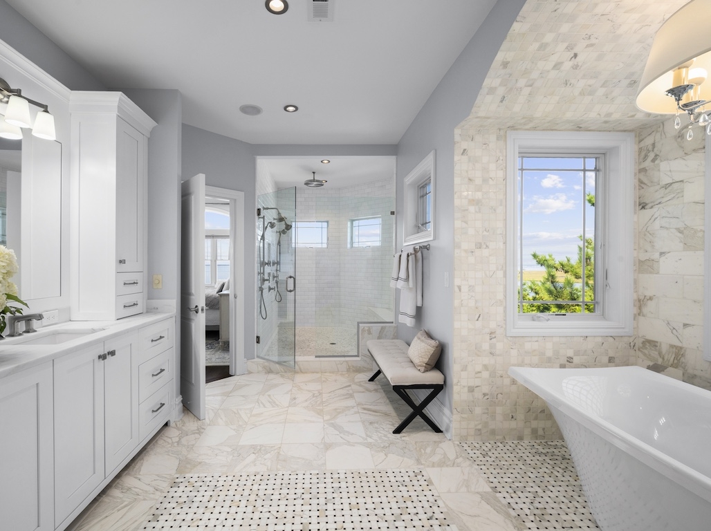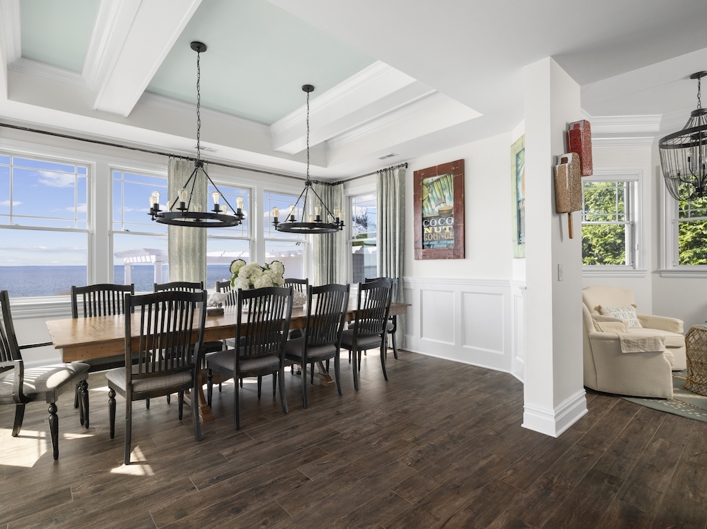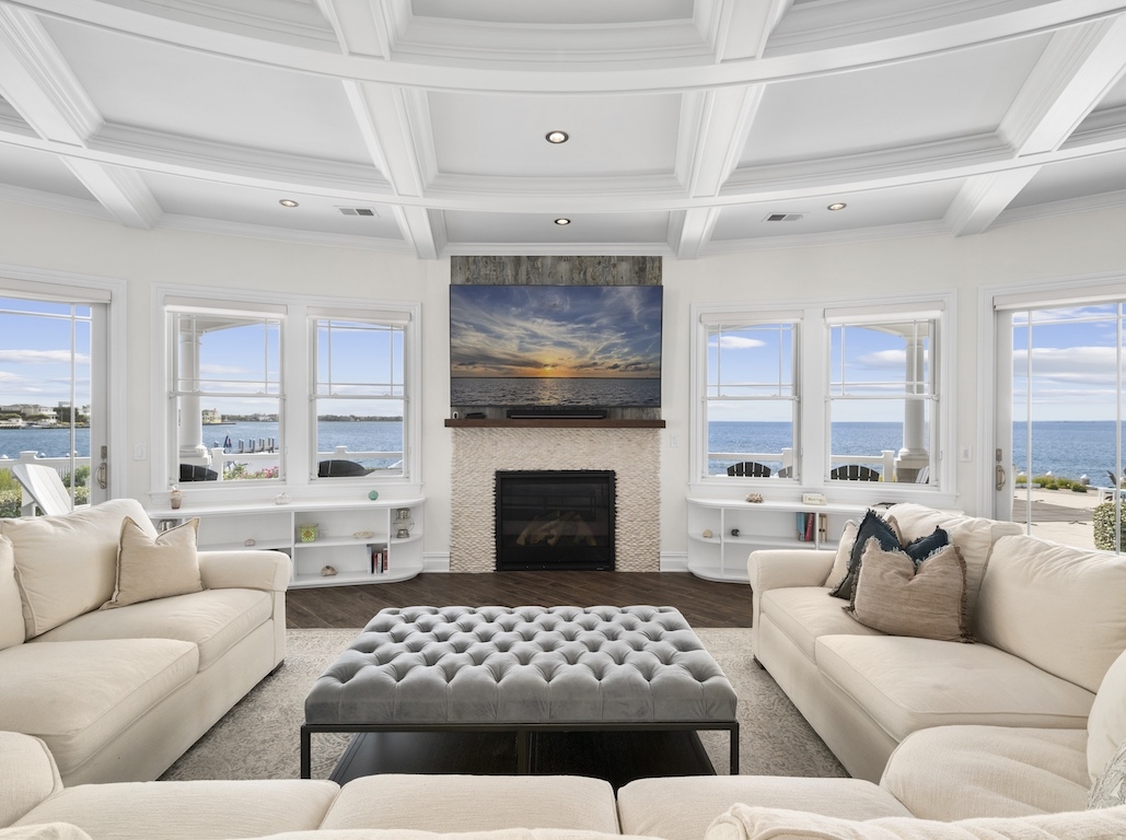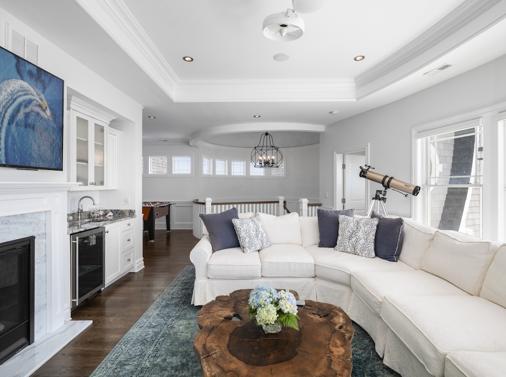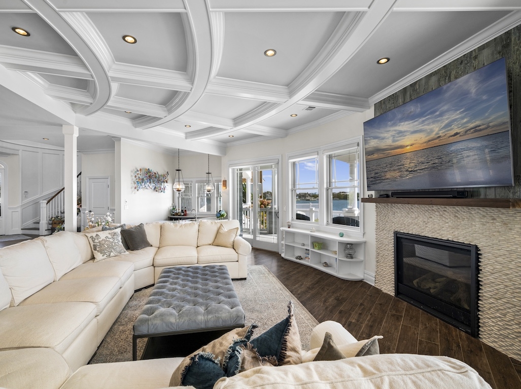 Spanning 6,309 sq. ft. of refined coastal living, the home is thoughtfully designed with a user friendly non-reverse living layout, allowing effortless indoor-outdoor flow and immediate access to your private waterfront pool, hot tub, and outdoor grille bar. Walls of glass frame the sweeping Barnegat Bay, while multiple sitting areas, a sunken bar, and expansive decks create an inviting environment for hosting large gatherings.