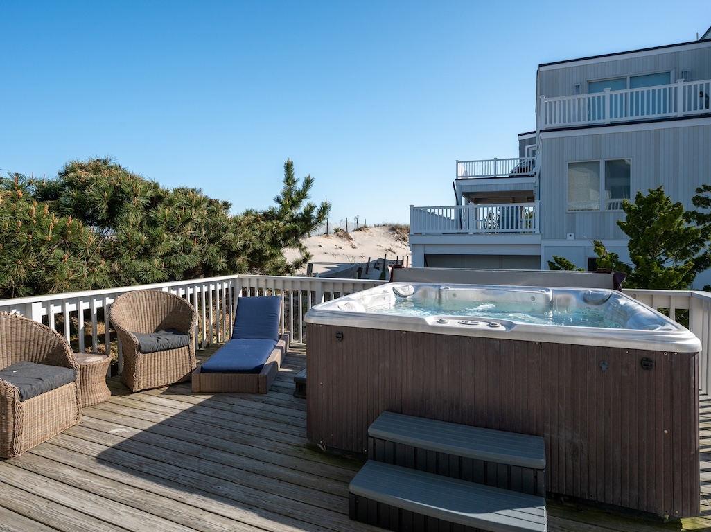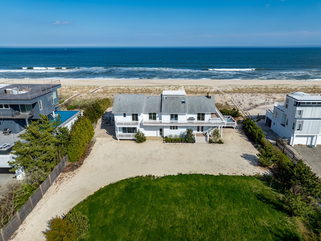 The current structure was tastefully renovated in 2019 with 4,600 SF of living space, 8 bedrooms, and annual rental rates of approximately $250,000/year. Nestled amongst Loveladies' most impressive estates, the home overlooks a high dune with sweeping views of the Atlantic along 125' of waterfront. The house is unique in that it not only has 180-degree ocean views, but also enjoys glorious bay and sunset views.