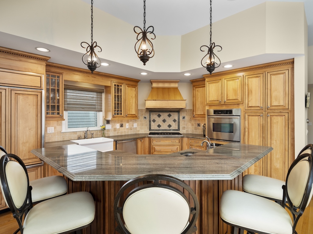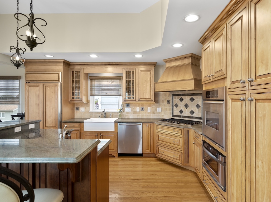 With 4 bedrooms (3 en suite) 4.5 baths, family room with wet bar and deck (or optional 5th bedroom), granite and marble counter tops, cook's kitchen with BOSCH, KitchenAide, and 5-burner Viking Cooktop, surround sound, hardwood floors, three-stop elevator-all married by multiple decks.
