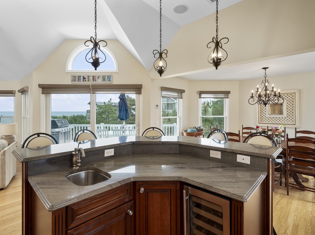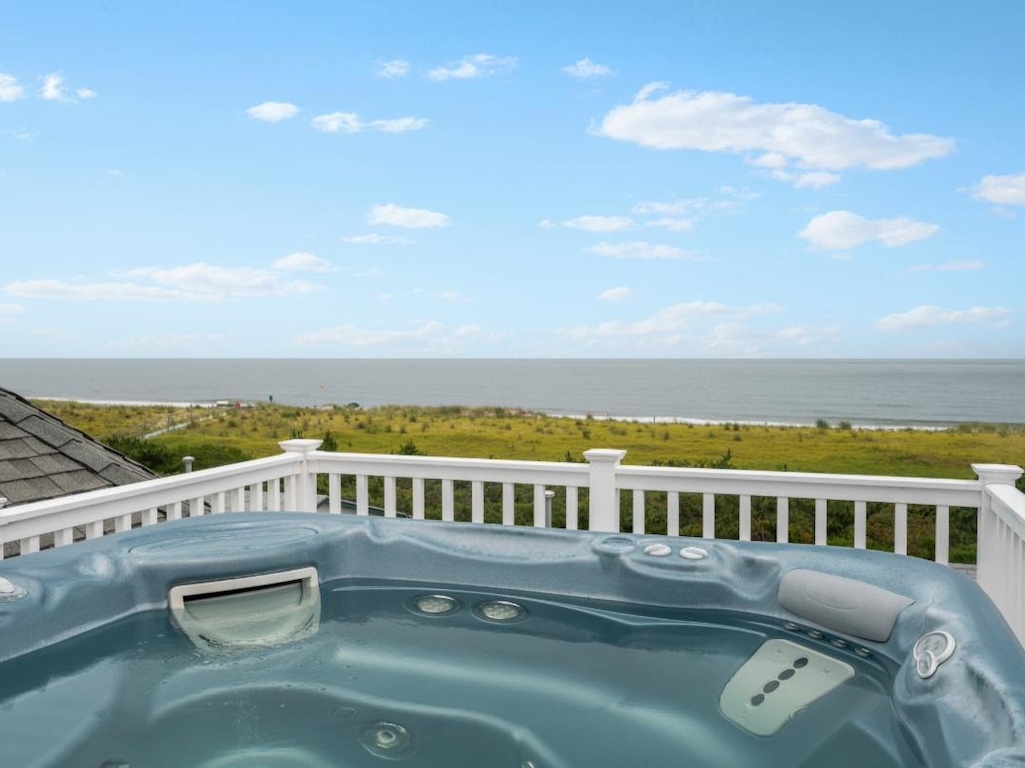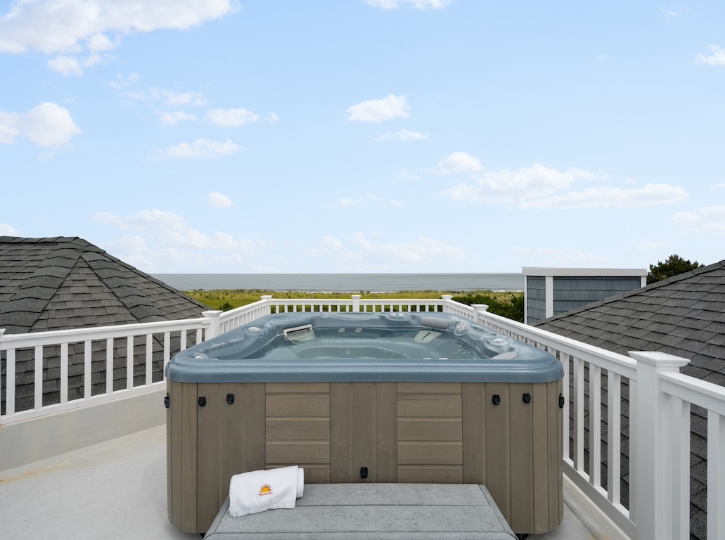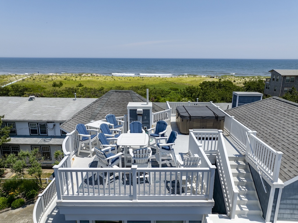 Enjoy sun worshiping, star-gazing, or the cool ocean breeze as you dive into that steamy summer novel on your shaded porch. Private deeded ocean access. Extensive decking including two tiered roof deck (one with a hot tub), both with incredible water views for sunrise or sunset!