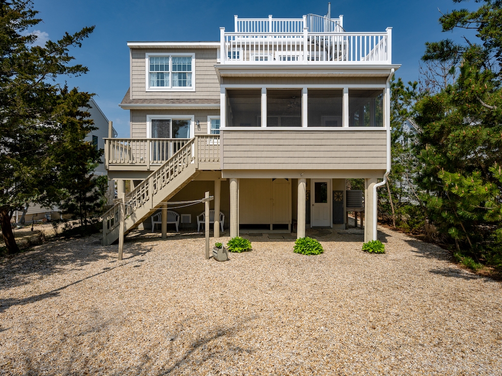 Open and airy living/dining/kitchen area with cozy fireplace nook. Hardwood flooring throughout and a large newly fiber glassed screened porch overlooking your tranquil backyard. With its sunny southern exposure, you can add a pool, spa, and fire pit for entertaining. Watch the BL Fleet return from sea on the topside widow’s walk. This well-maintained beach house has undergone a spring refresh including exterior stain, interior paint, rear gutters, new front, and garage doors. The home is furnished, has never been rented and is ready for immediate occupancy.