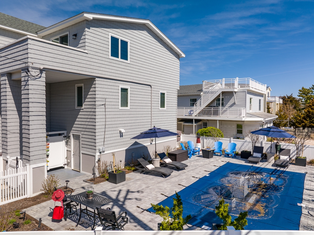 Find your Happy Place on coveted Holly Avenue in Harvey Cedars and enjoy the good life here on LBI. Plenty of room to entertain from this delightfully designed contemporary with 4 bedrooms, 2.5 baths, additional family room, and backyard oasis. Pick a deck and dive into that summer romance novel in shade or sun. The stone paver backyard is a sun-worshiper’s dream with tranquil fountains splashing into the 12x26 salt water pool. Recent updates include new siding, awnings, HVAC system, fiberglass decks and roofs.