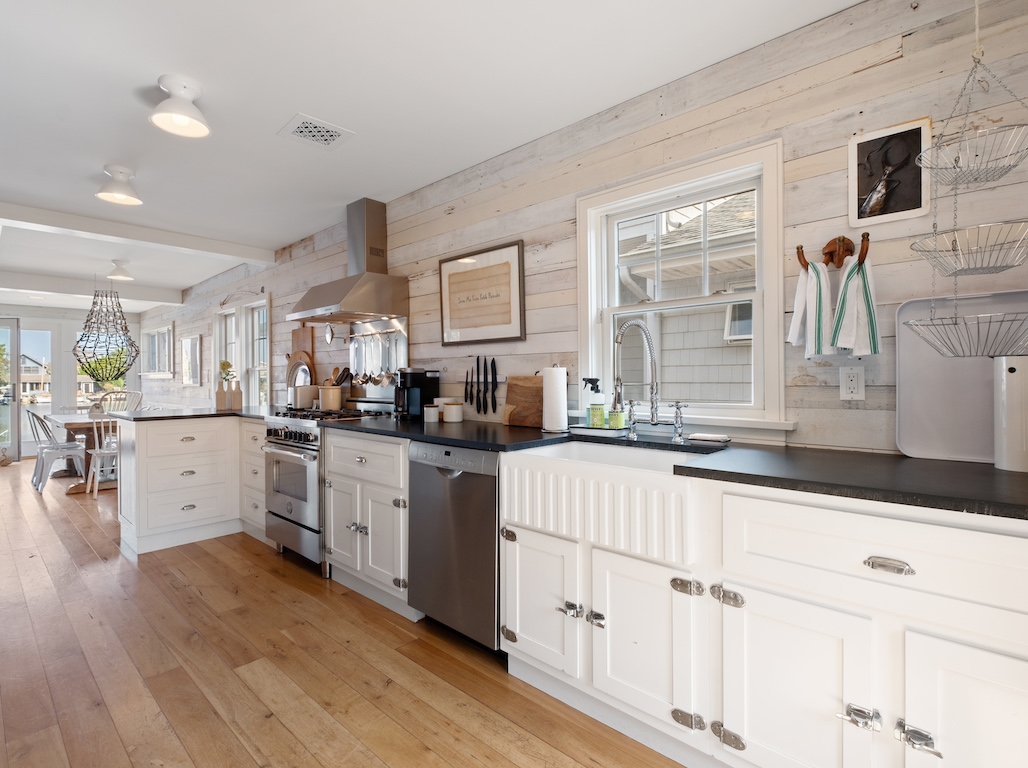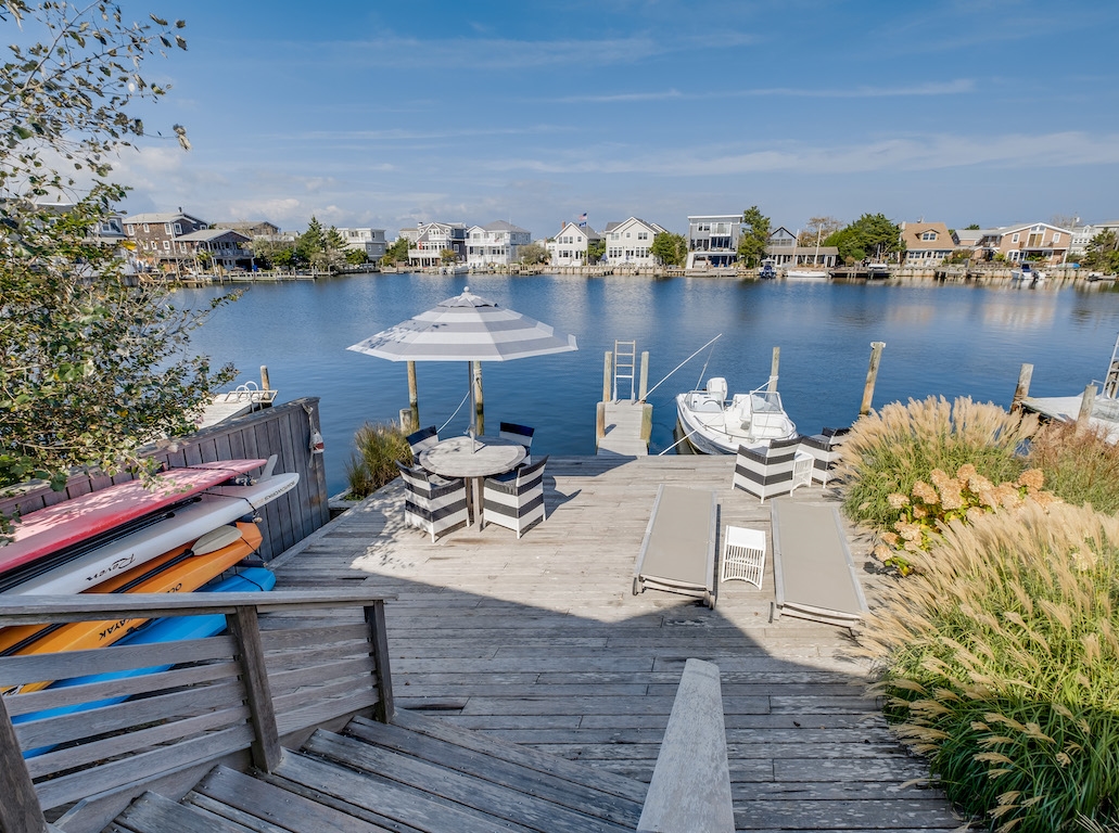 Nestled in Harvey Cedars, fronting Kinsey Cove, this fully renovated shiplap lined fisherman's cottage. A short walk to guarded 80th Street Beach - ideal for sunning, swimming, and surfing. Or jump off the spacious deck right into the cove and swim, paddle or kayak. Steps from Black Eyed Susan's, Harvey Cedar's Shellfish, Neptune's Market, Harvey Cedar's Ice Cream, and Neptune's Liquor Store. A short ride to Sunset Park - playground, courts, and weekly summer concerts.