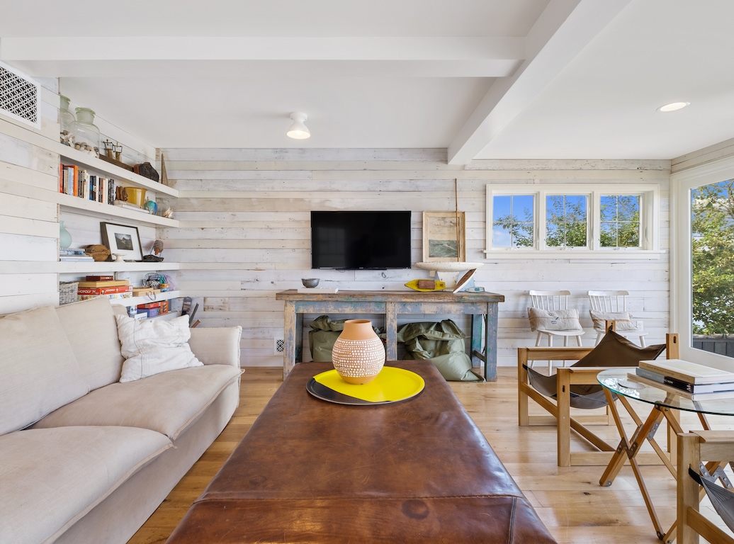 One of the last surviving fisherman's cottages that once dotted idyllic Kinsey Cove, this charming, fully renovated light filled beach house has everything you need for your sun-filled get-away. Just right for couples, solo adventurers, a group of friends, or small families. Walk into the fully equipped galley kitchen with breakfast bar through to the open plan living and dining room with floor to ceiling windows overlooking the cove. Head straight for the large deck and dock, with gas grill, dining table, and lounge chairs.