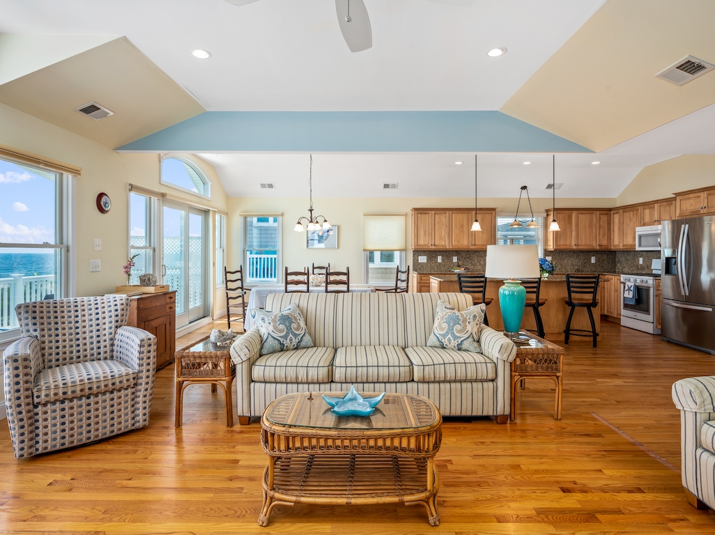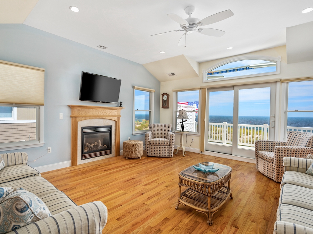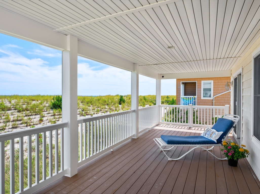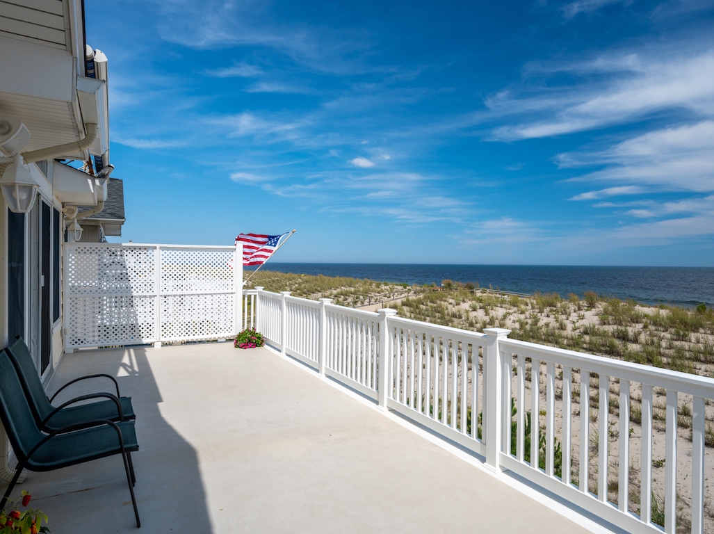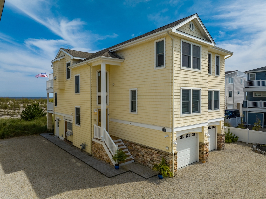 Enjoy soothing views of the Atlantic from this spacious oceanfront contemporary well-situated in the rolling dunes of Harvey Cedars.