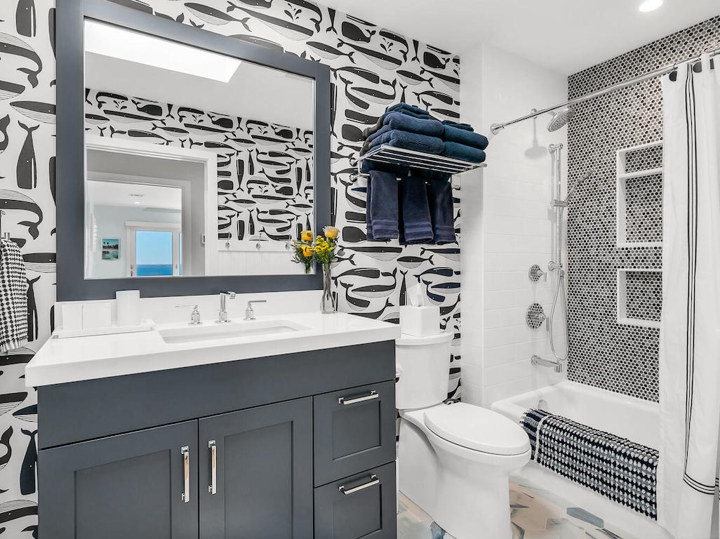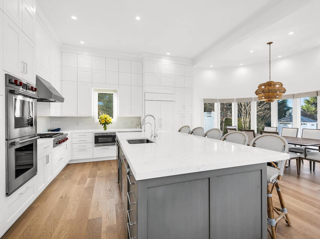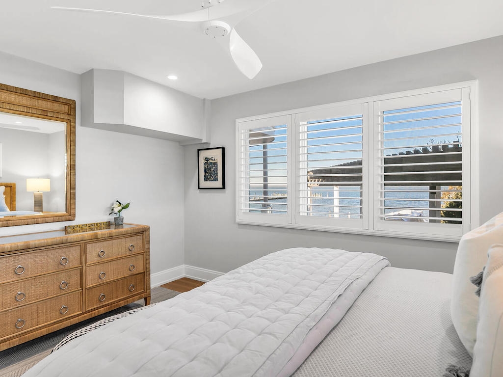 With architecturals by Jay Madden, this home rivals new construction with smashing interiors, designer furnishings, and Control4 smart home electronics. Custom gunite pool and waterfall spa, automatic Hunter Douglas blinds, linear fireplace, WOLF and Sub-Zero appliances, custom Wood-Mode cabinetry, and wide plank white oak flooring throughout. The custom tile selections in the bathrooms are adorned with Serena & Lilly wallpaper, Nantucket wainscoting, custom shower glass doors, Kohler, Grohe, Duvarit sinks and fixtures. Soaring ceilings and walls of glass frame unobstructed bay views for endless sunsets.