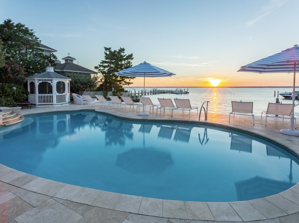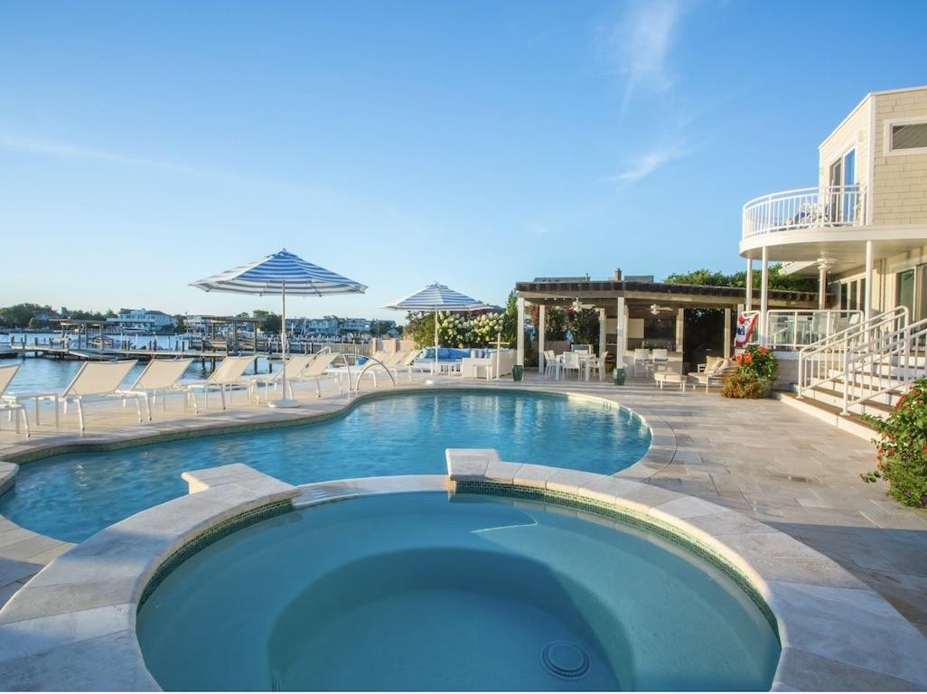 Enjoy treasured times with family and friends this season at this fabulous Loveladies bayfront compound. Sprawling along 127 feet of sandy bay beach with deep water dockage, you’ll enjoy ample room for water toys or that trophy yacht. Launch sailboats or paddle boards right off your backyard filled with cool travertine tile and mahogany decking. Just a short stroll to tennis and a lifeguarded beach.
