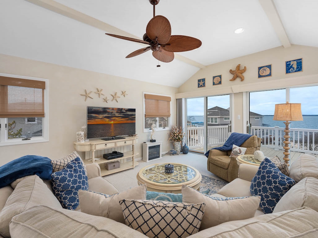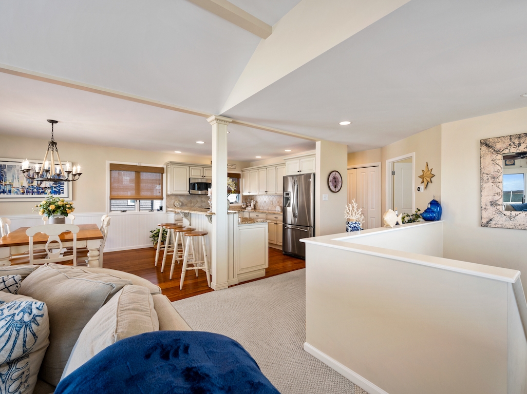 The reversed-living design features 4 bedrooms, 2.5 baths, a family room, and three levels of copious decking affording triple shot views of the bay and even vistas of the Atlantic from the upper-most deck. Enjoy glorious sunsets and the String of Pearls as you toast to summer. These views will not disappoint.