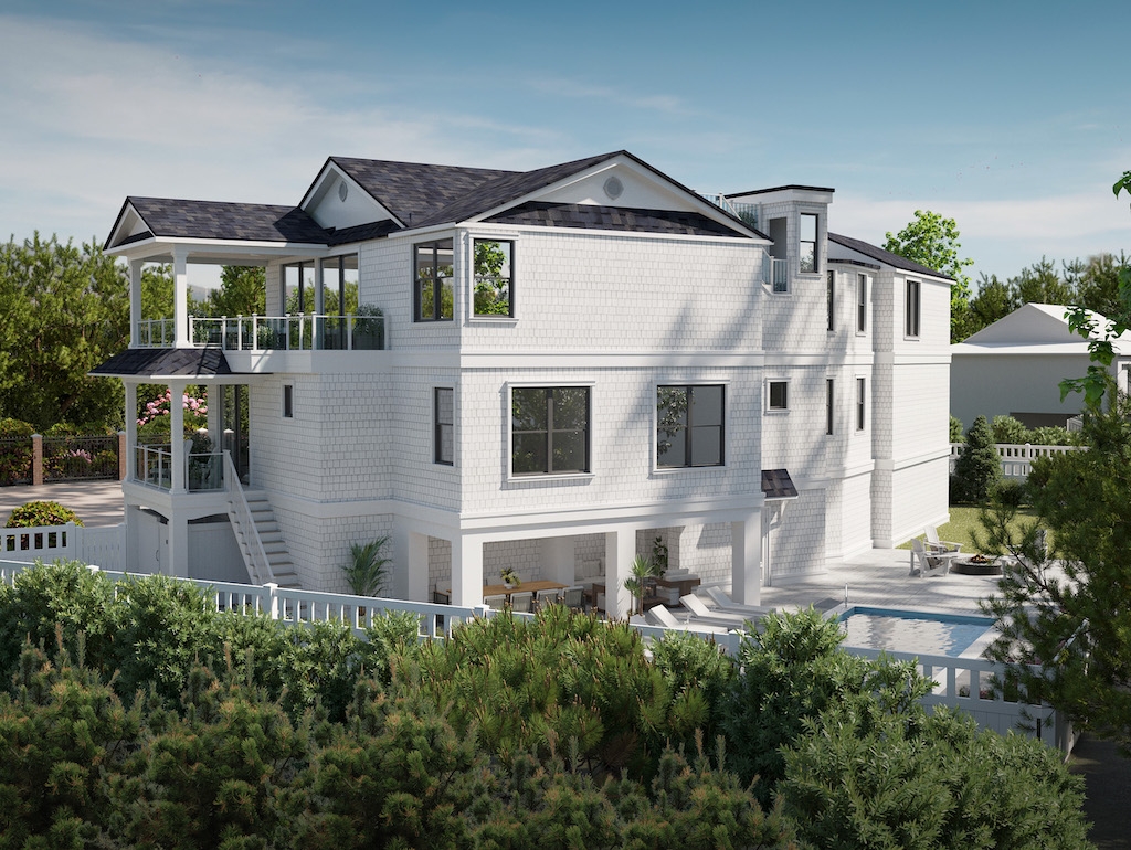 Located along a gated, private easement just third from the ocean in Loveladies, cool off next summer at this stunning 4500 sq. ft. Ziman Development estate. Everything one expects from the Island’s premiere builder, this lavish 6 bedroom 5.5 bath shingle-style home offers unparalleled views of the Atlantic from the entire upper level and primary suite.