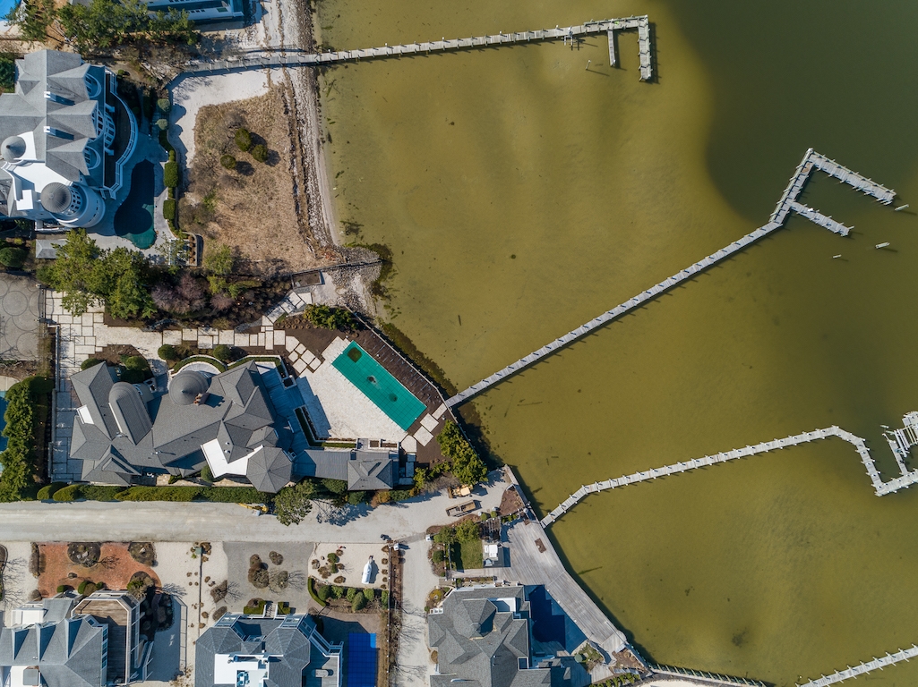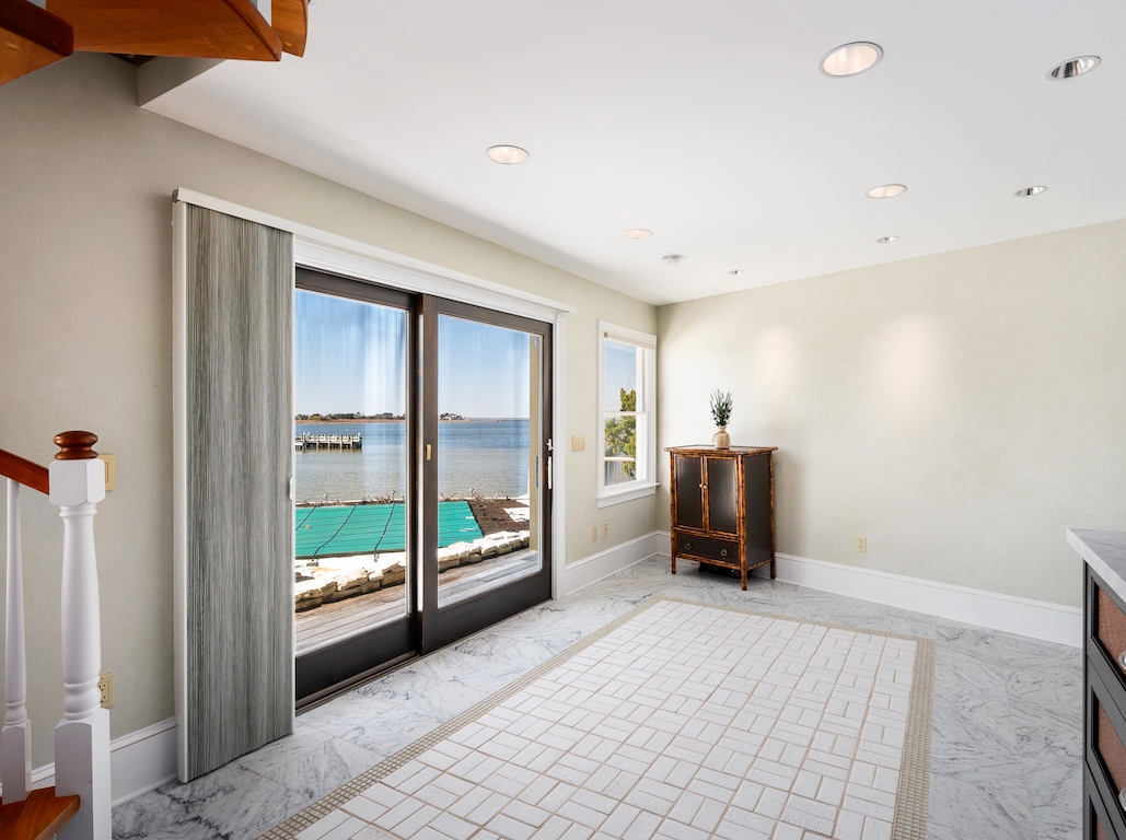 The main house offers 5 bedrooms and 6 full baths. His and her baths in the Captain’s Quarters with Calacatta marble counters, custom mahogany vanities and closets, nickel sinks by Waterworks, en-suite sauna, and graceful tub overlooking the bay. Climate controlled three car garage for all of your land and water toys.