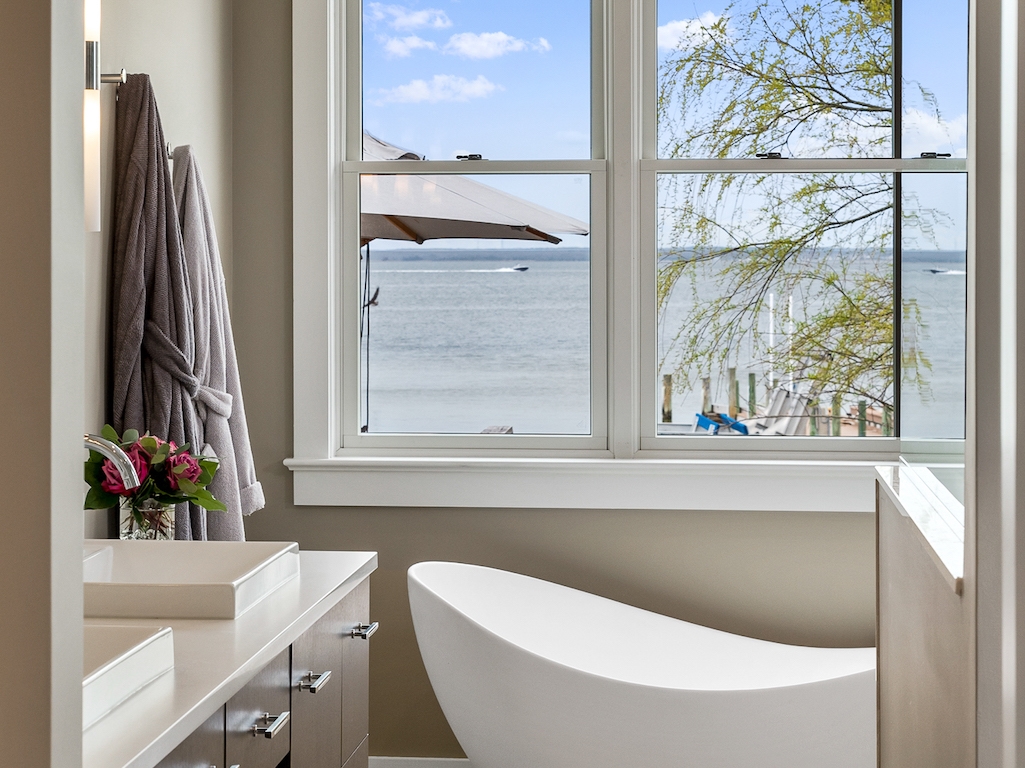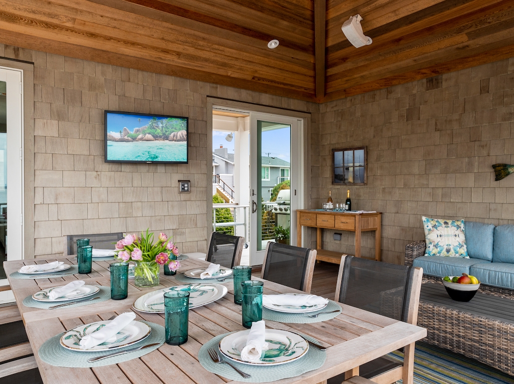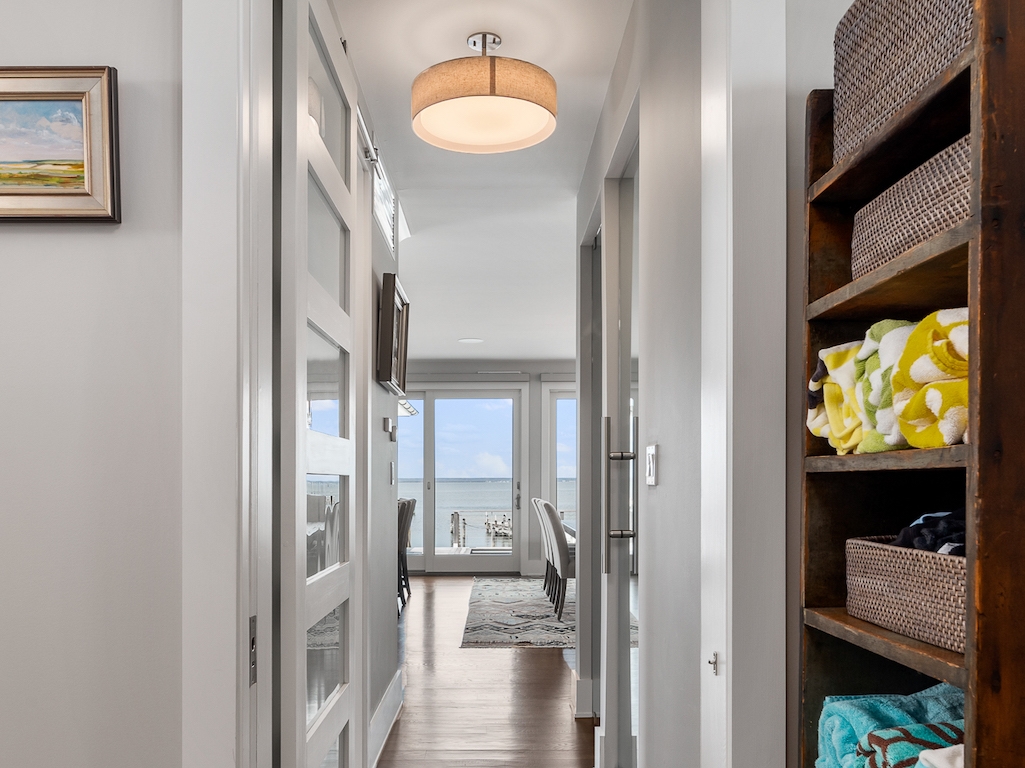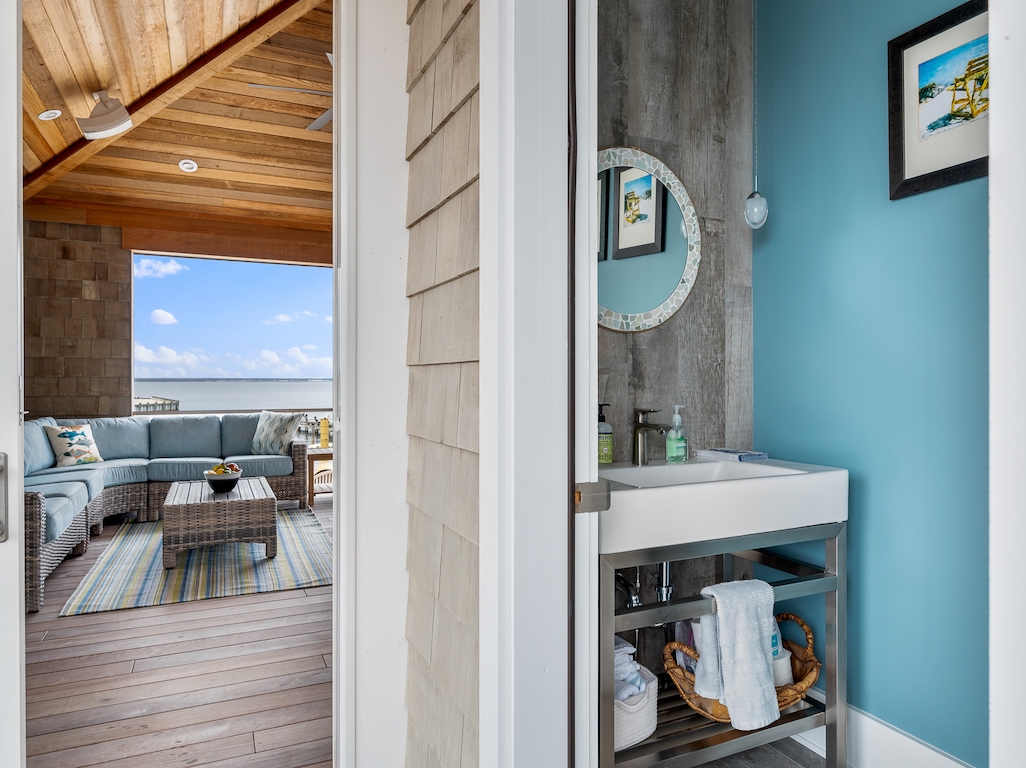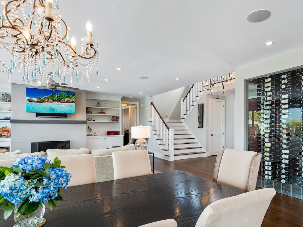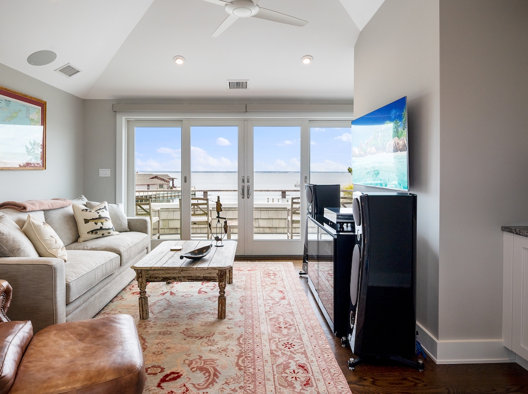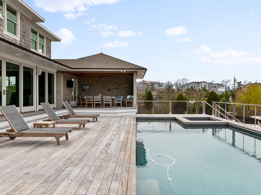Jay Madden designed this 4200 sq. ft estate with 1600+ sq. ft. decking. It is an outstanding example of luxurious, bayfront living, a flawless Skip Tool Construction 2018 build. 5/6 bedrooms, 4 full and 2 half baths complete this entertainer’s dream home. In non-reversed living there is a gourmet kitchen with Sub Zero, Wolf, Perlick and Miele appliances-- that is if you are not cooking on the extraordinary, sizable outdoor cabana with its own grille deck.